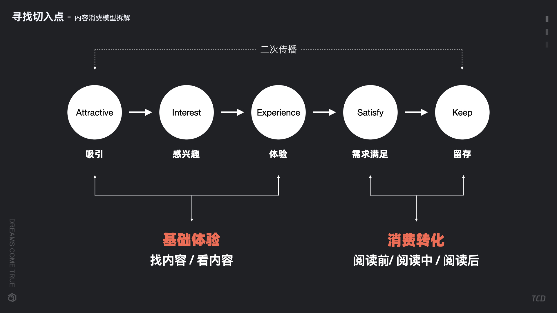 这里结合实际输出案例具体分析下:我们根据用户阅读路径分为 阅读前、阅读中、阅读后,分别在不同阶段根据用户不同诉求去进行设计目标制定和方案实施。