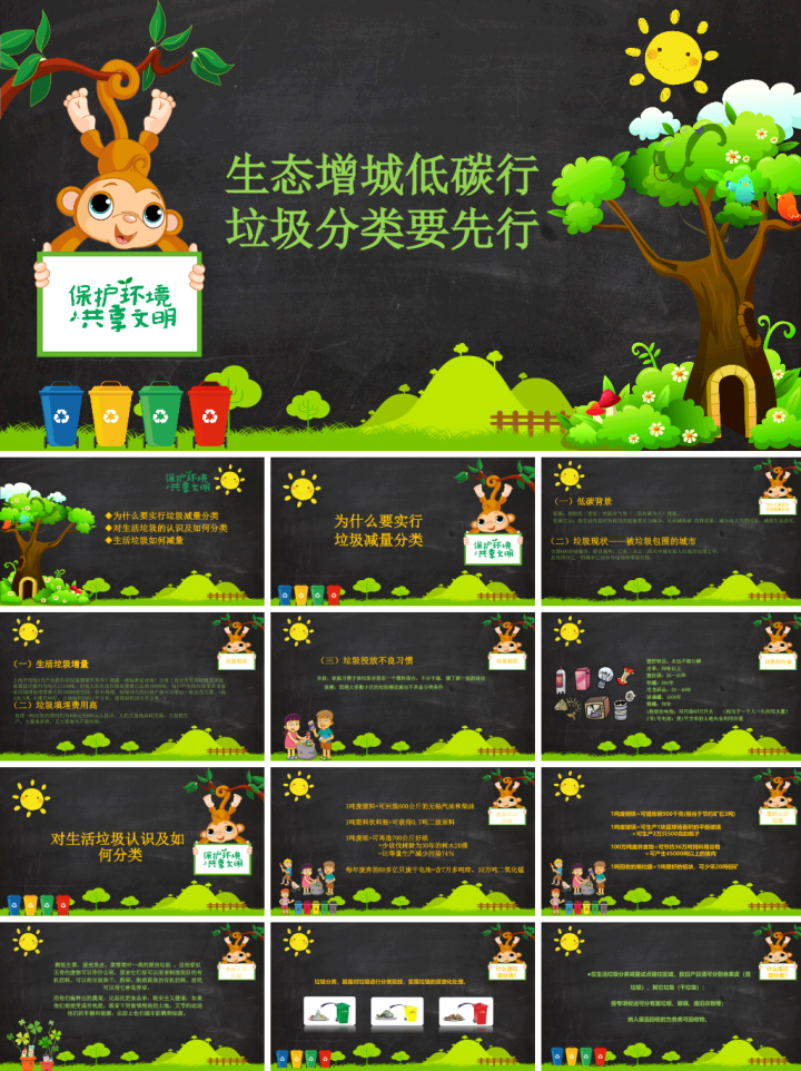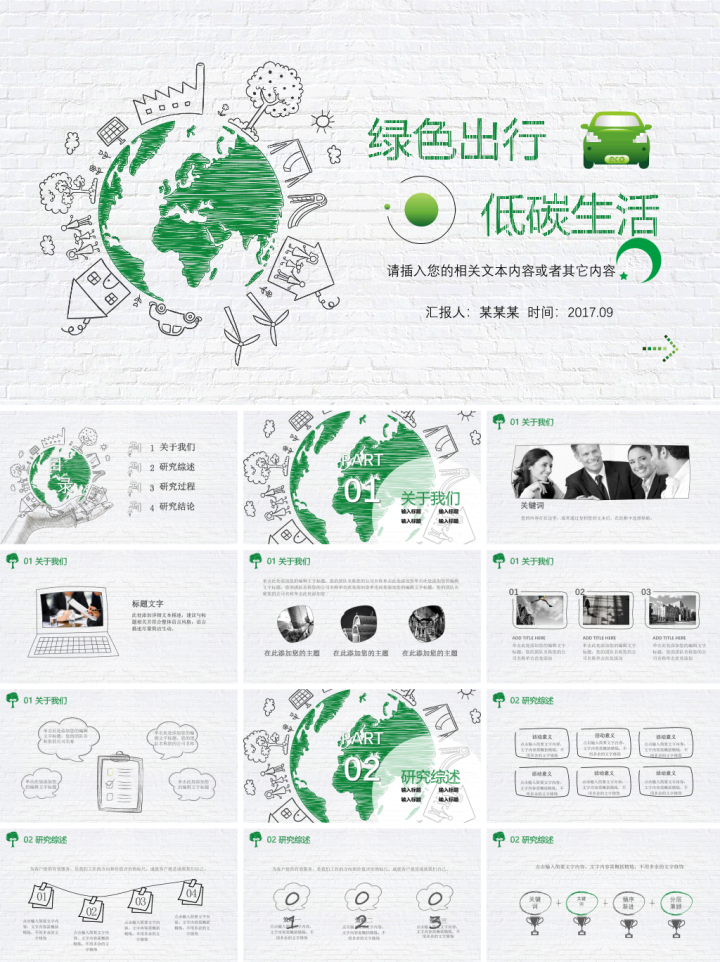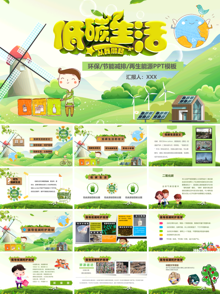 节能减排低碳生活绿色出行从我做起主题PPT模板分享-10套可下载
