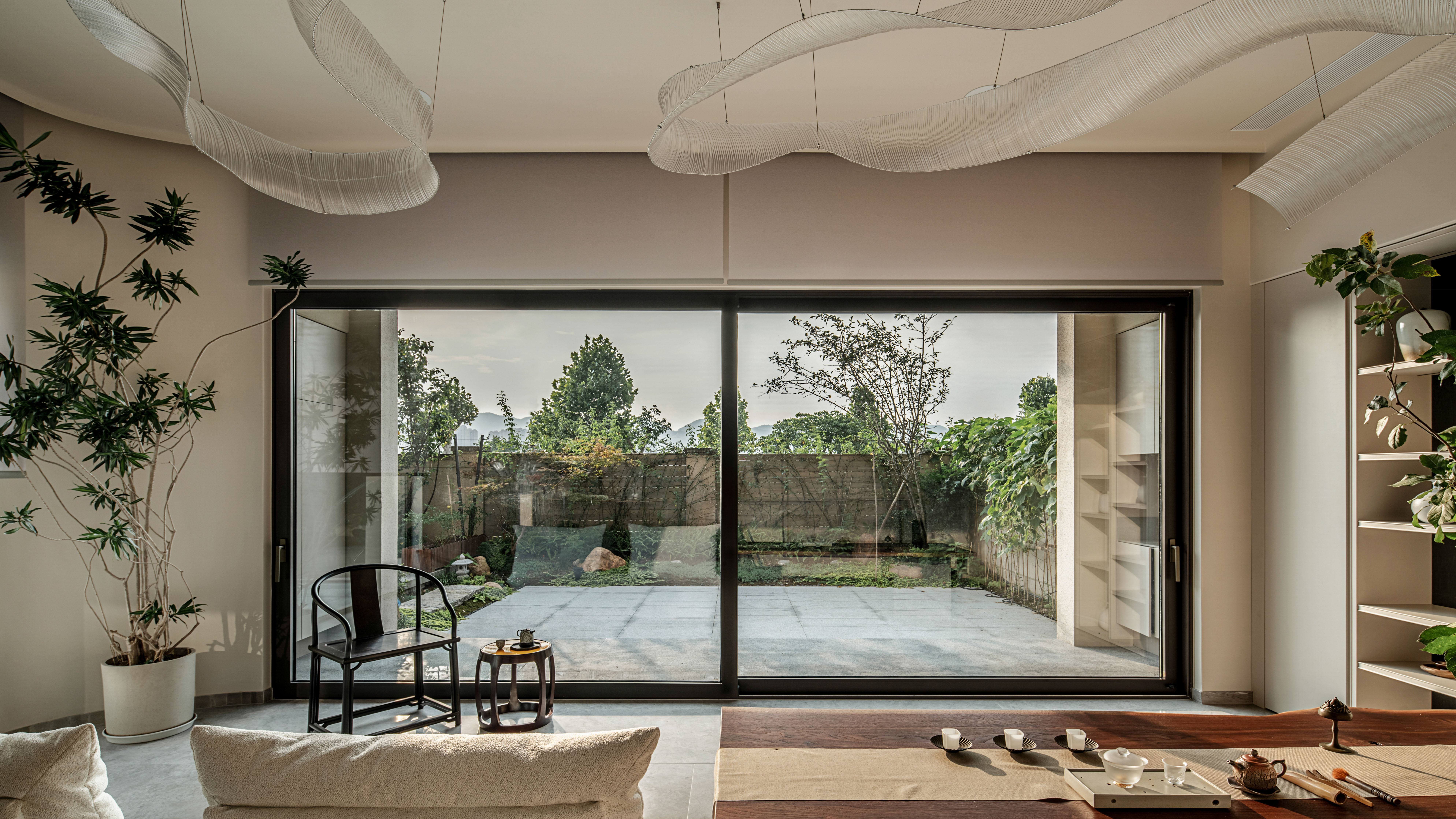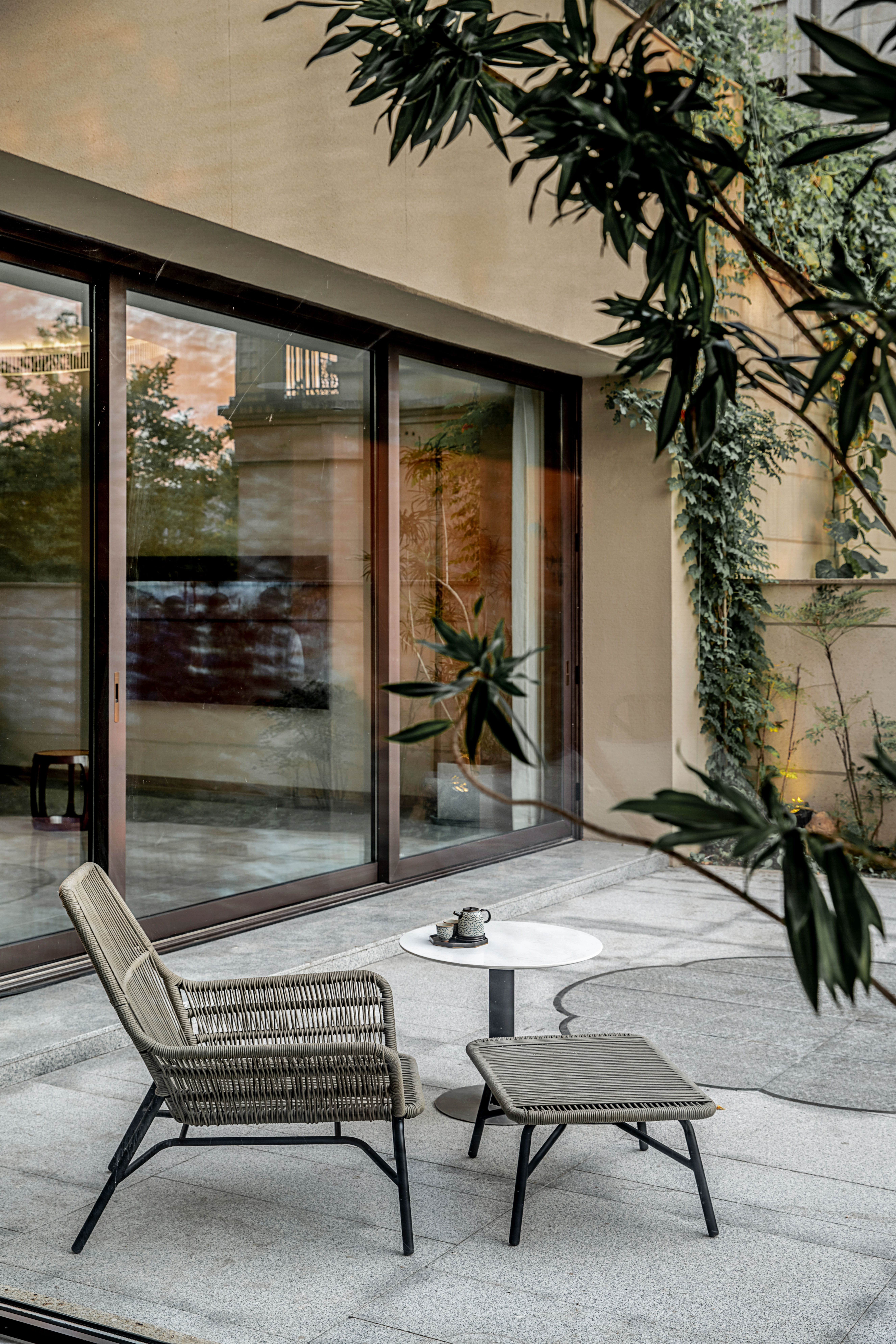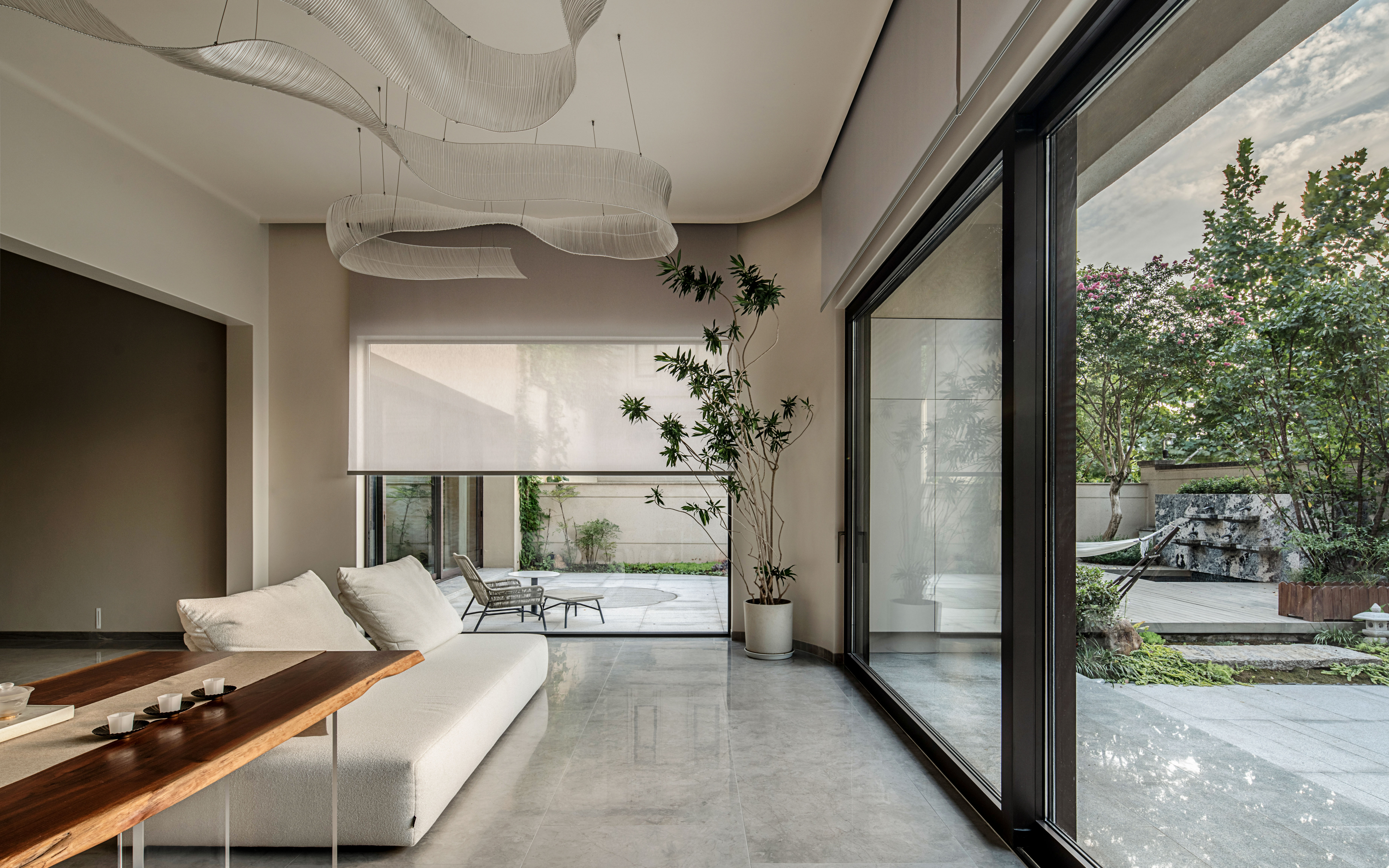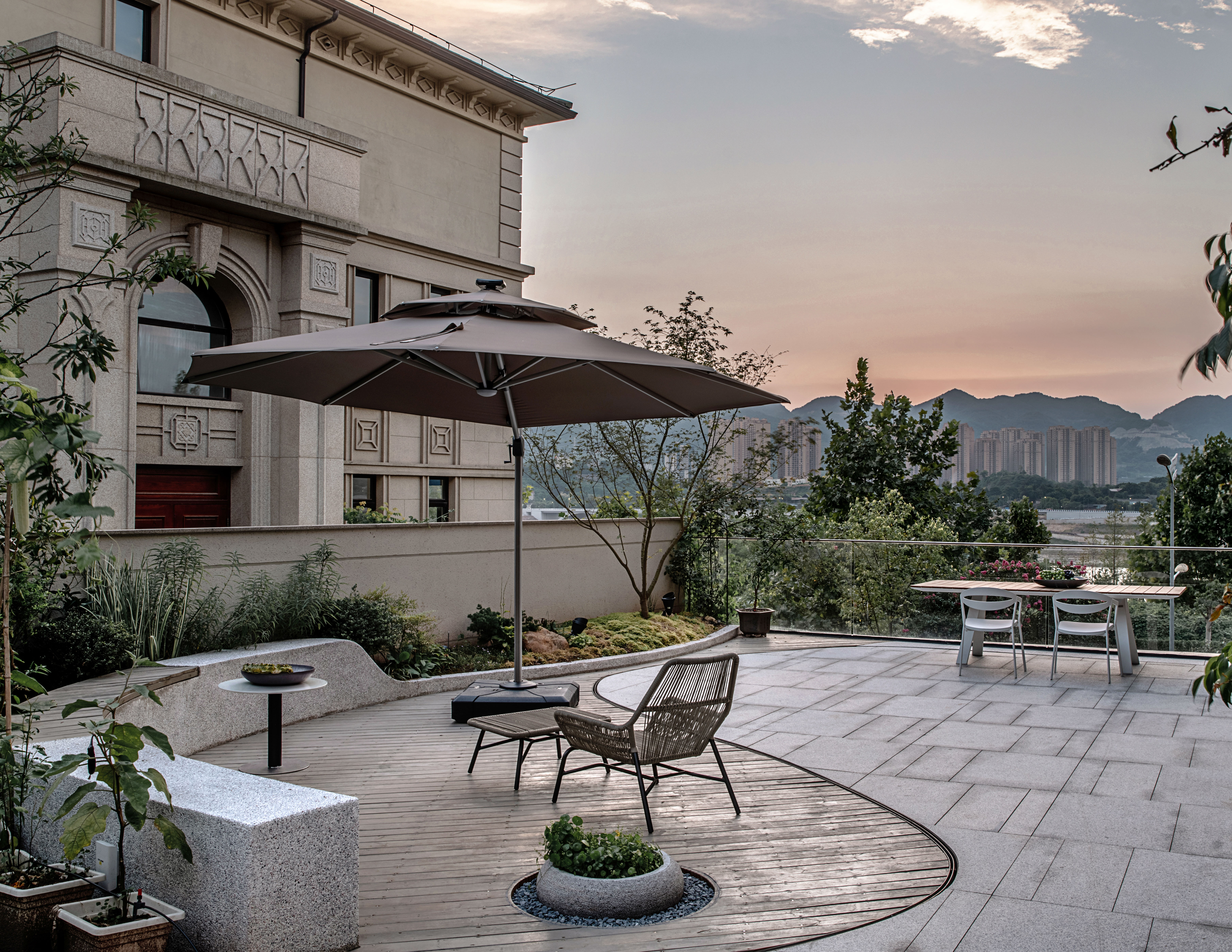 与户外餐桌、庭院景观共同构成的半开敞空间,