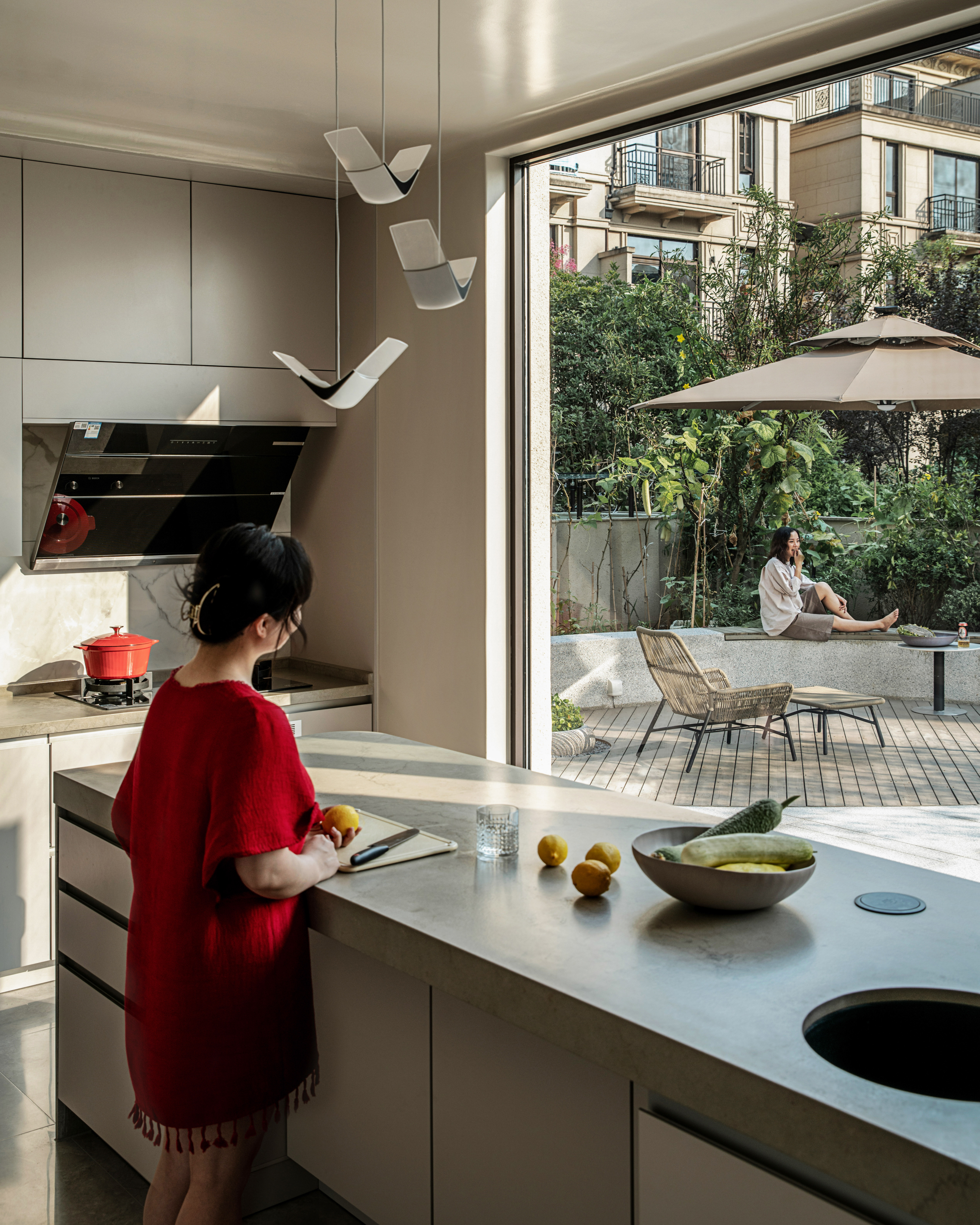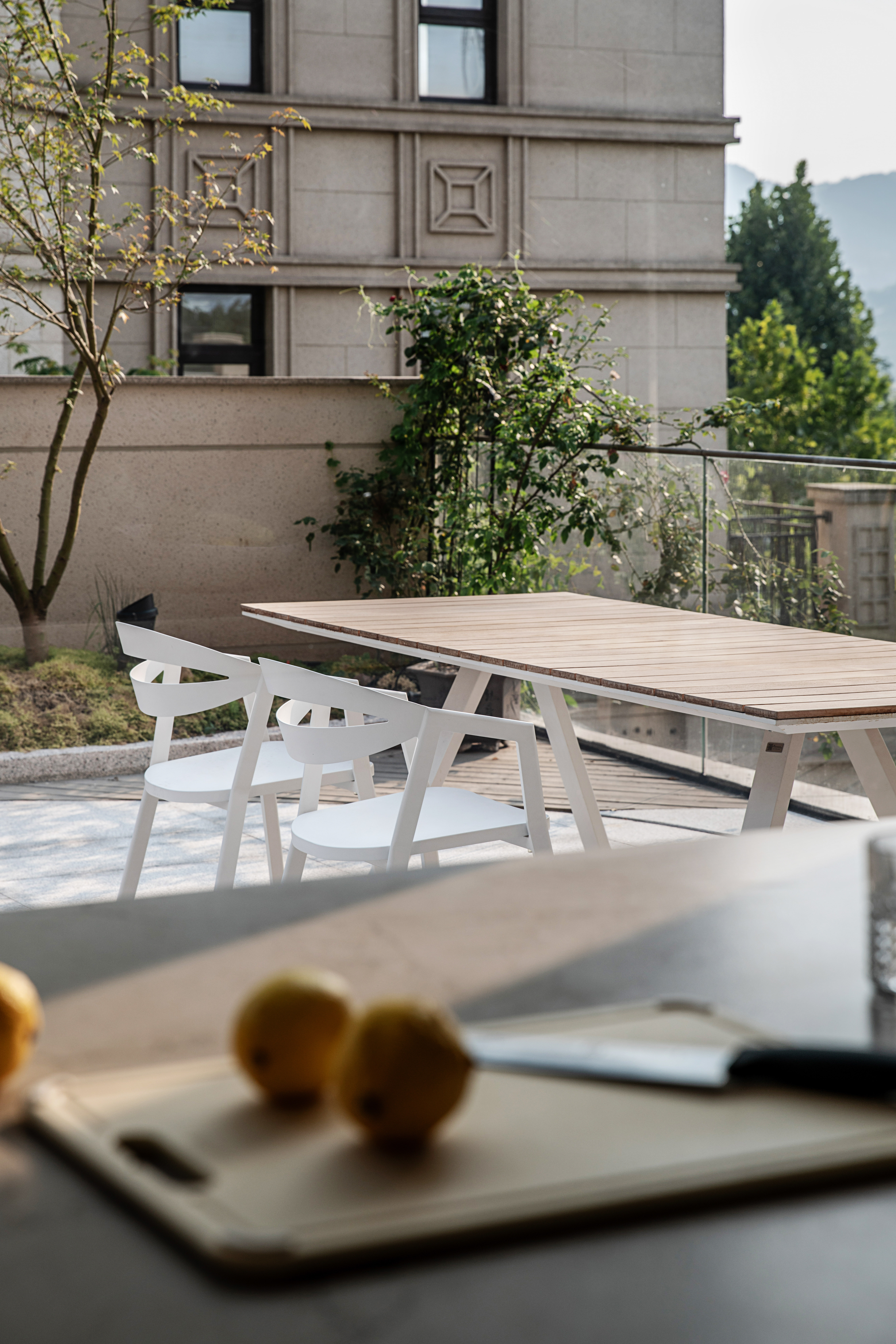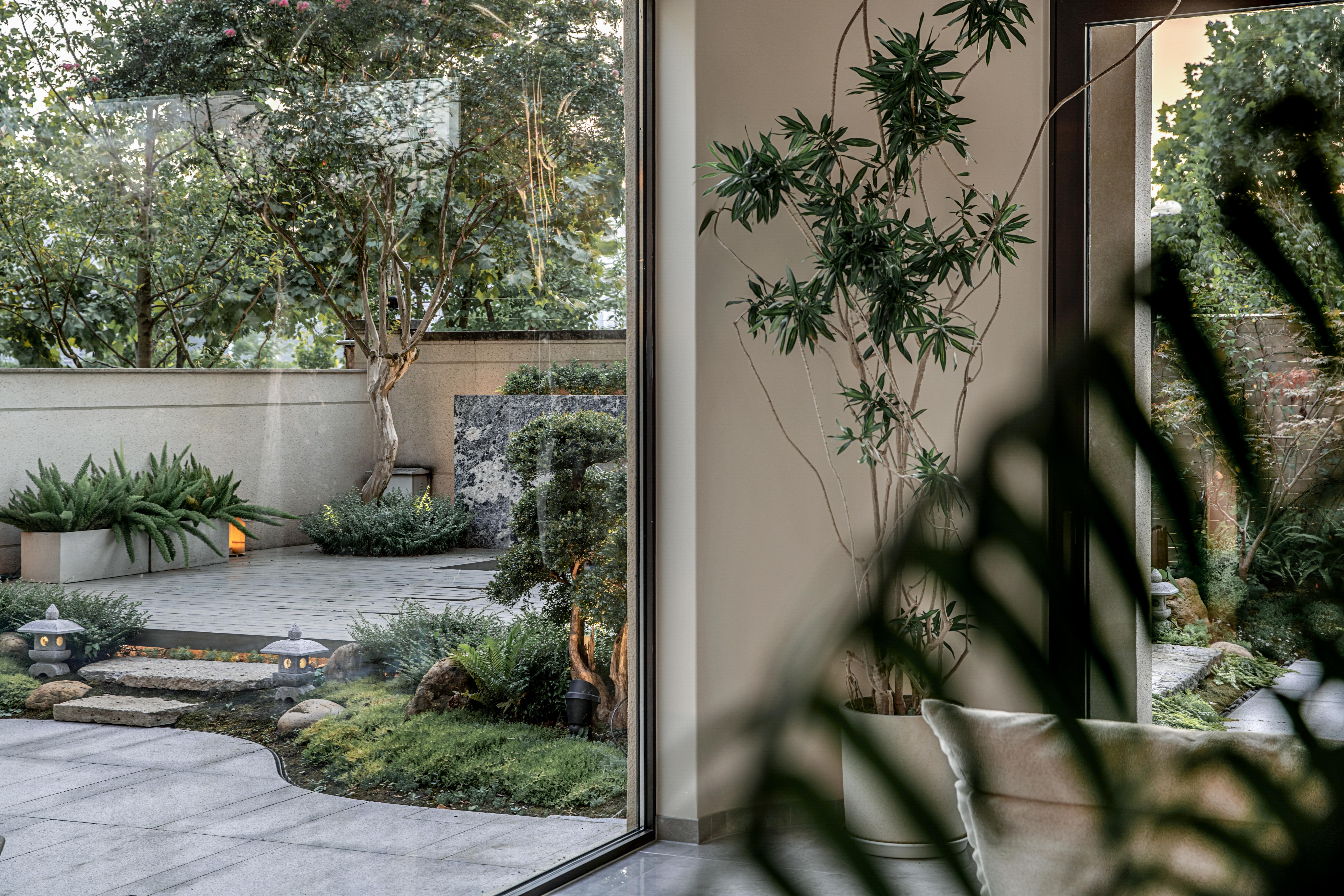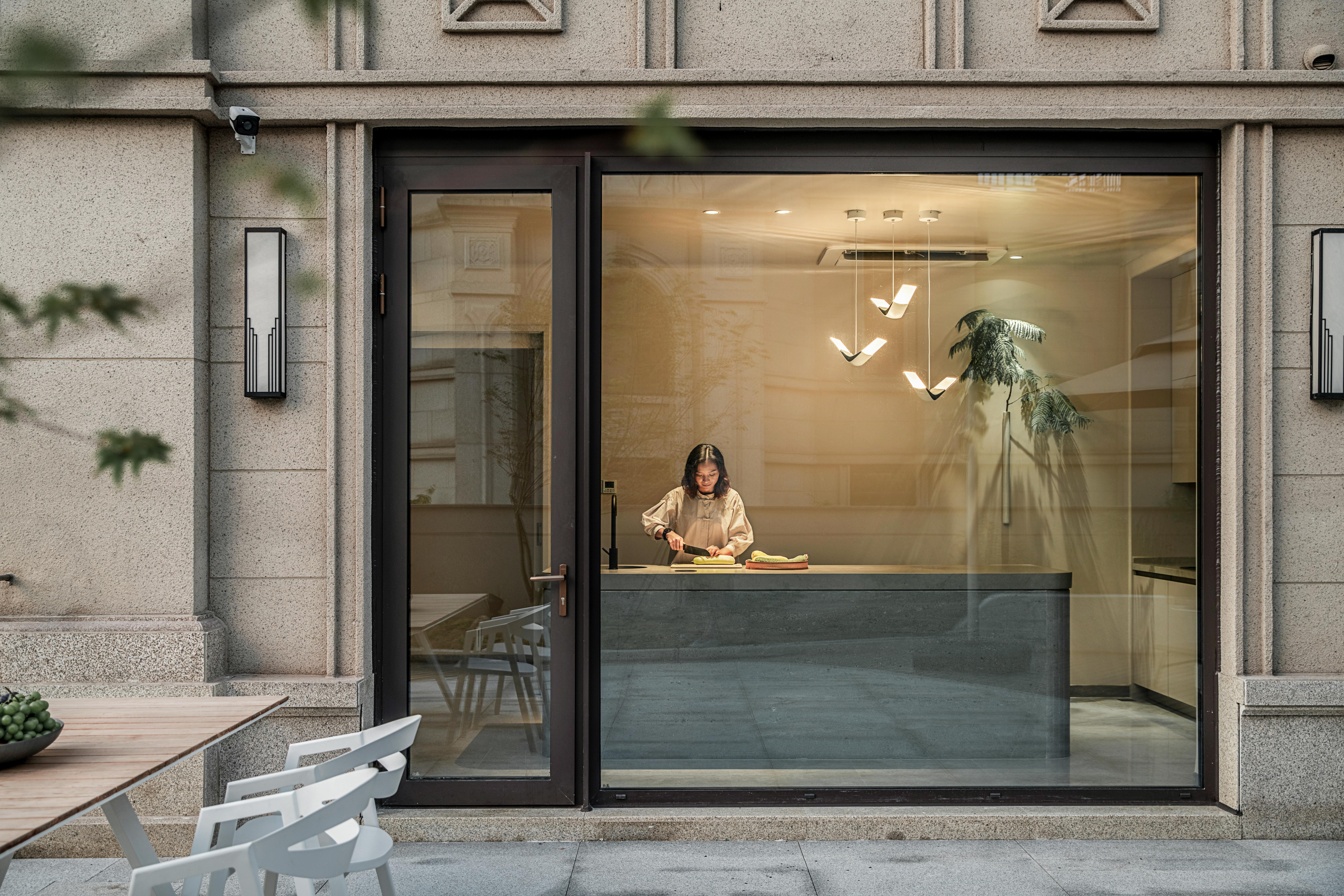 与户外餐桌、庭院景观共同构成的半开敞空间,