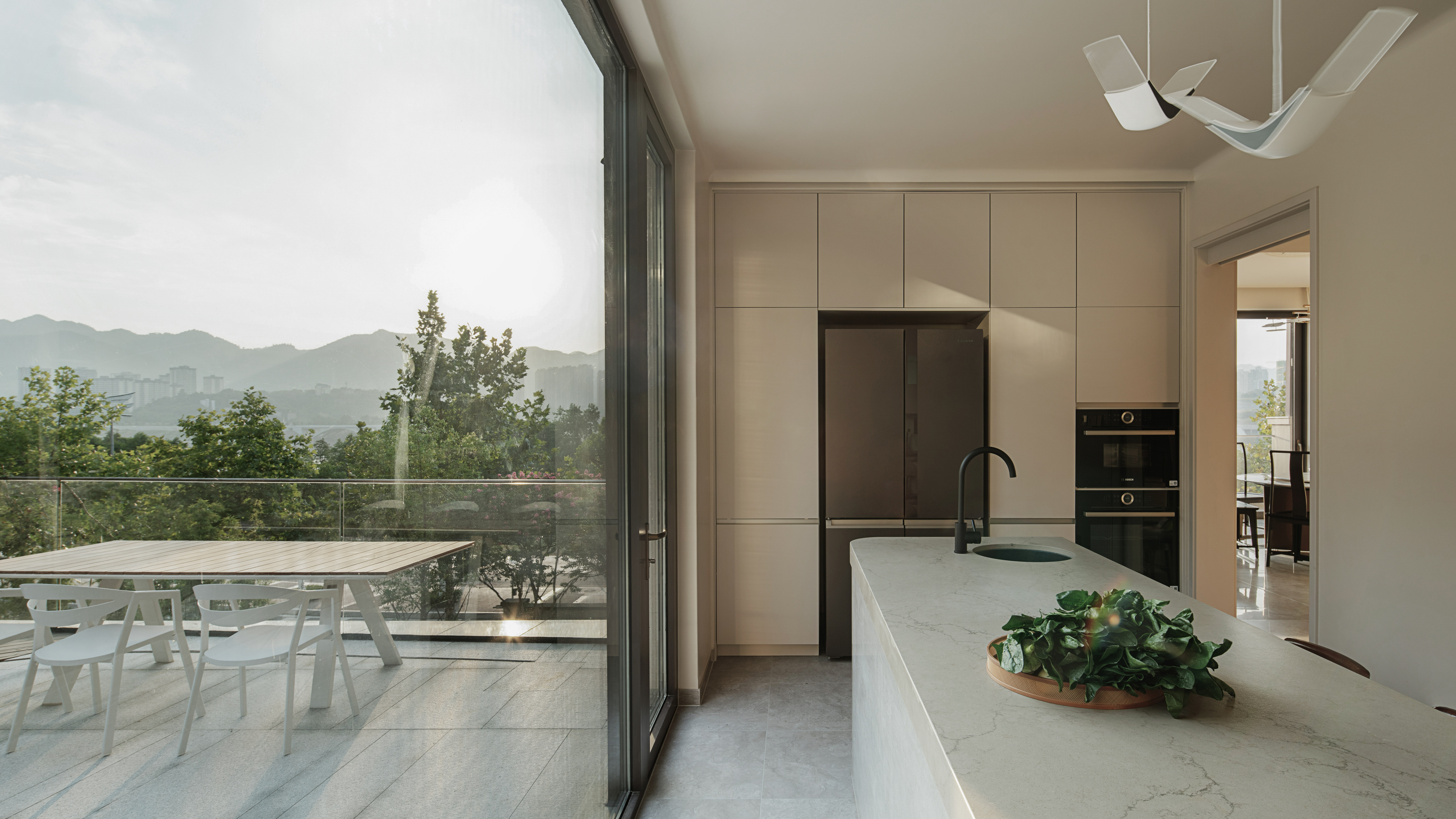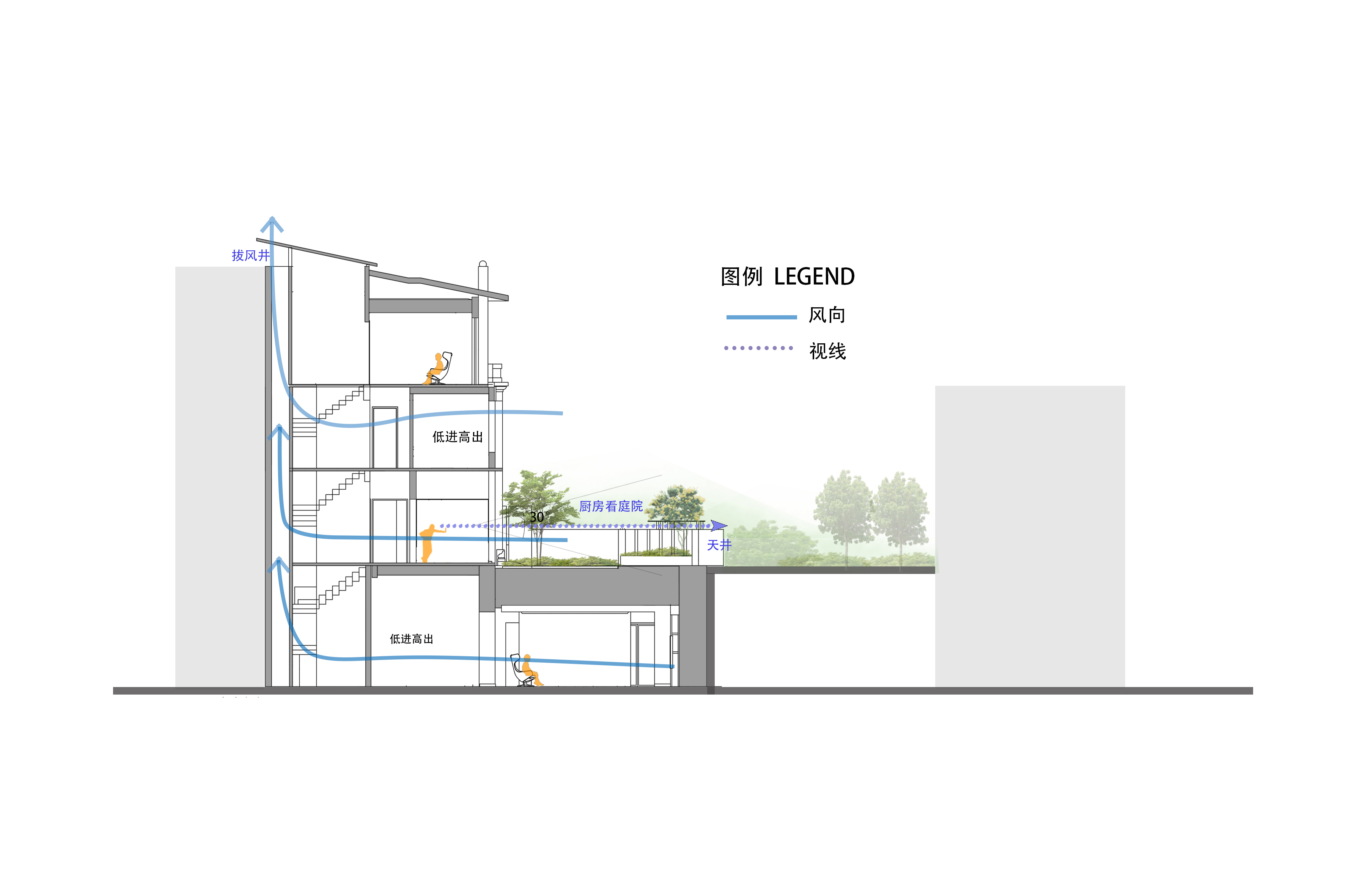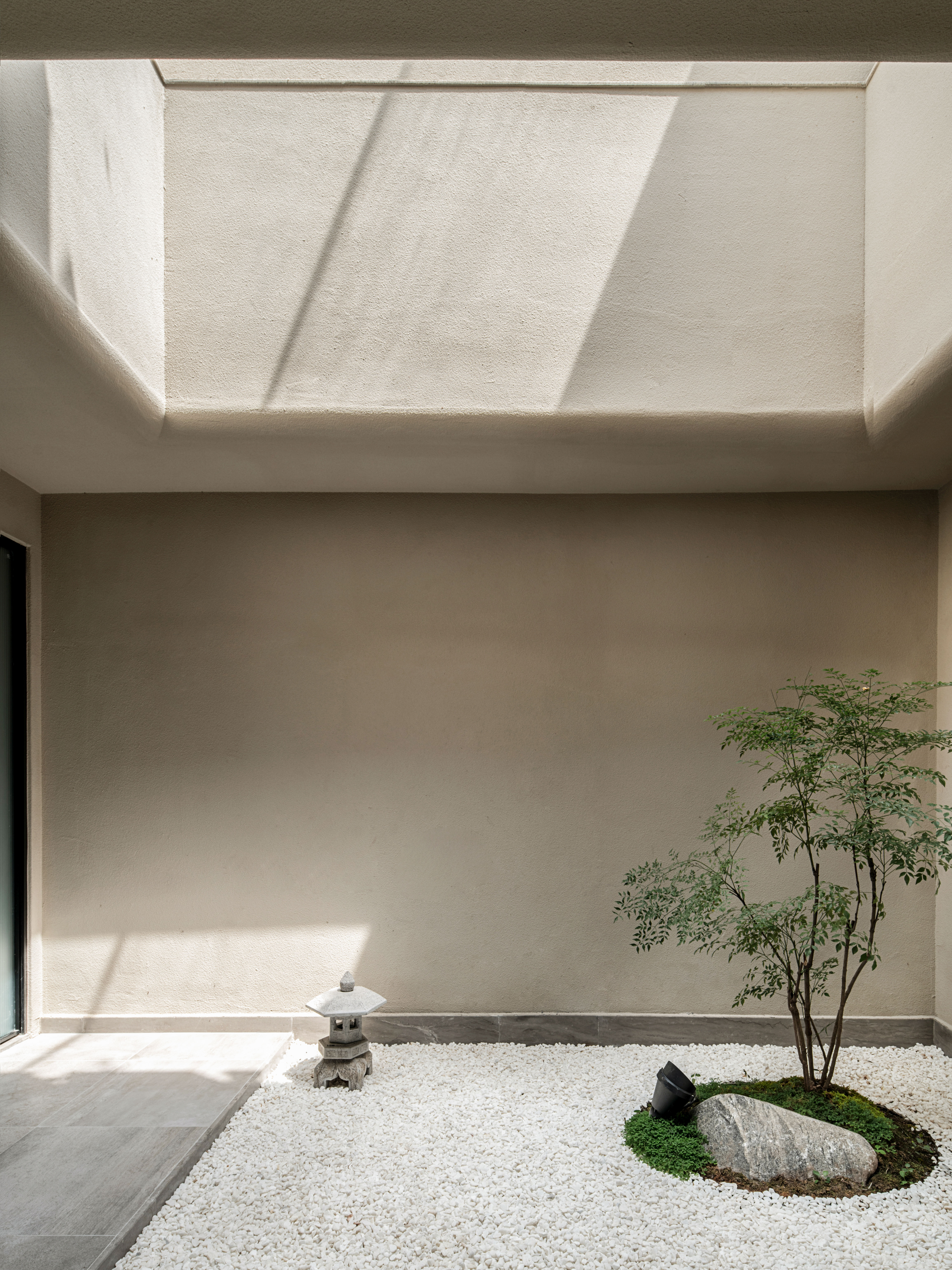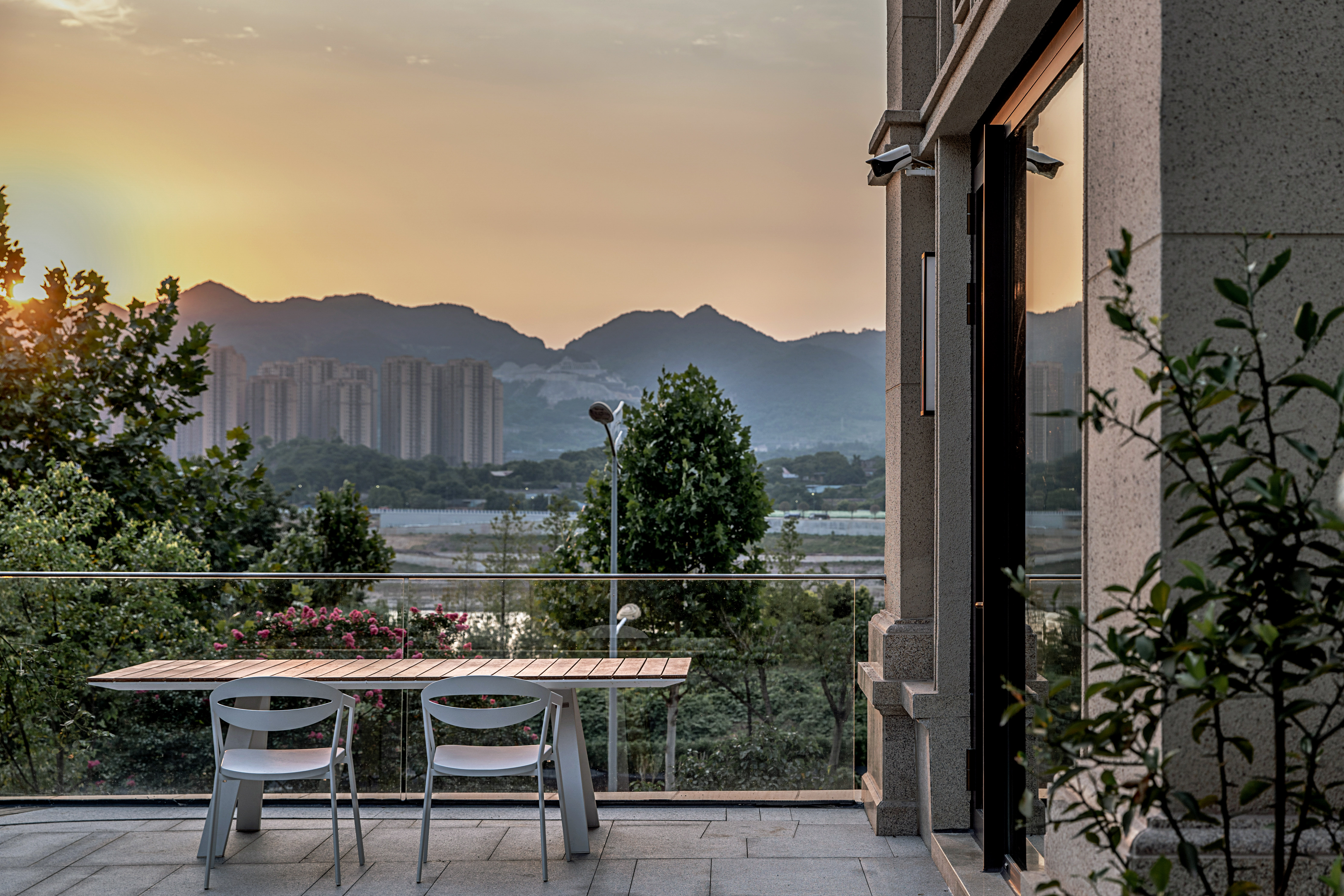 与户外餐桌、庭院景观共同构成的半开敞空间,