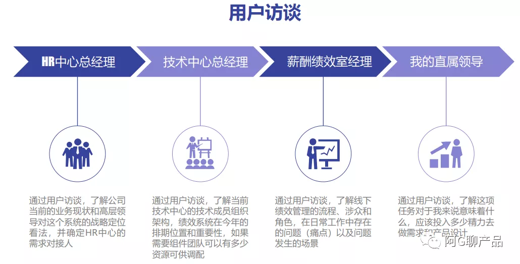 通过与薪酬绩效室经理的交流,可以了解线下绩效管理的流程、涉众以及他们在日常工作中存在的问题(痛点)、问题发生的场景。