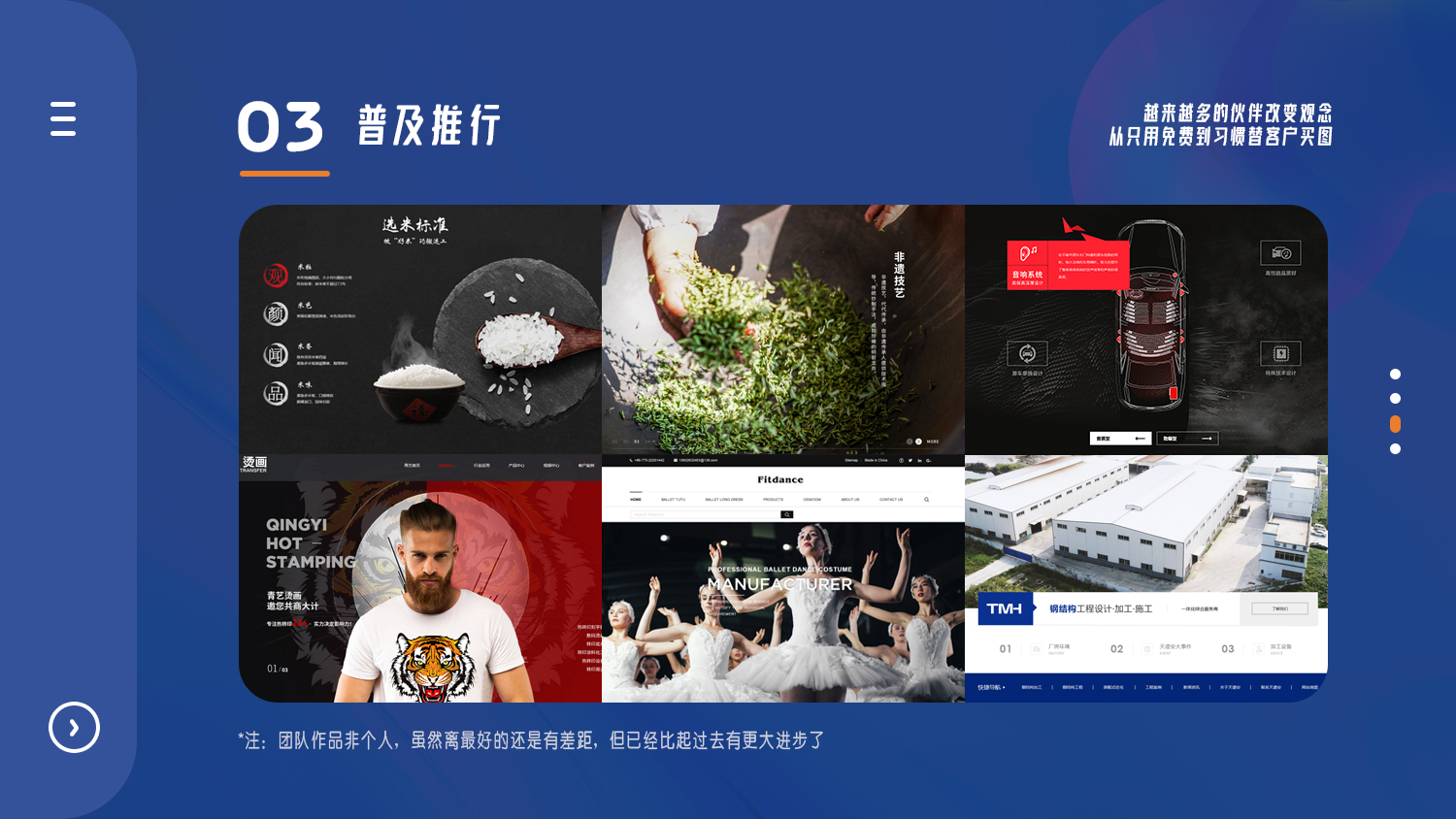 我们会羡慕那些拥有更好图片,更多投入去打造更好效果的团队或者公司,但好高骛远无益于工作,但是我们可以以此作为自己工作的榜样和参考以及自身所要努力涉及达到的目标。朝着它前进,总有天会实现。要相信,更美好的东西总会在未来出现。而且过去那些不够好的,现在现在已经有了足够改善了不是么?