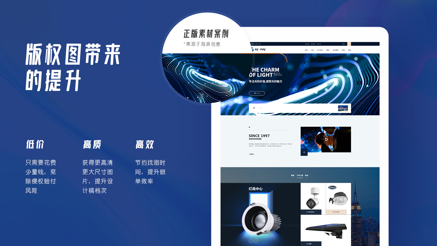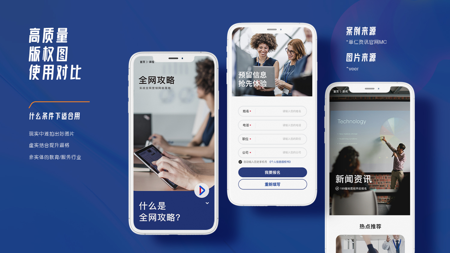 但是正版图你说它重要,的确很重要,但网络素材图也仅仅是网络用图,它的下限很高,怎么也比普通图好,但是无法突破上限。更好的设计一定是结合实际拥有更高价值价格的原创图。在用图之余,切不可产生太多的依赖。它是商业用图快速高质的解决方案,但并非个人进一步提升成长必选方案。它能解决一部分项目问题,但解决不了所有。此外,光靠图片过稿,忽略了设计其他方面技能的完善,反而是种退步。