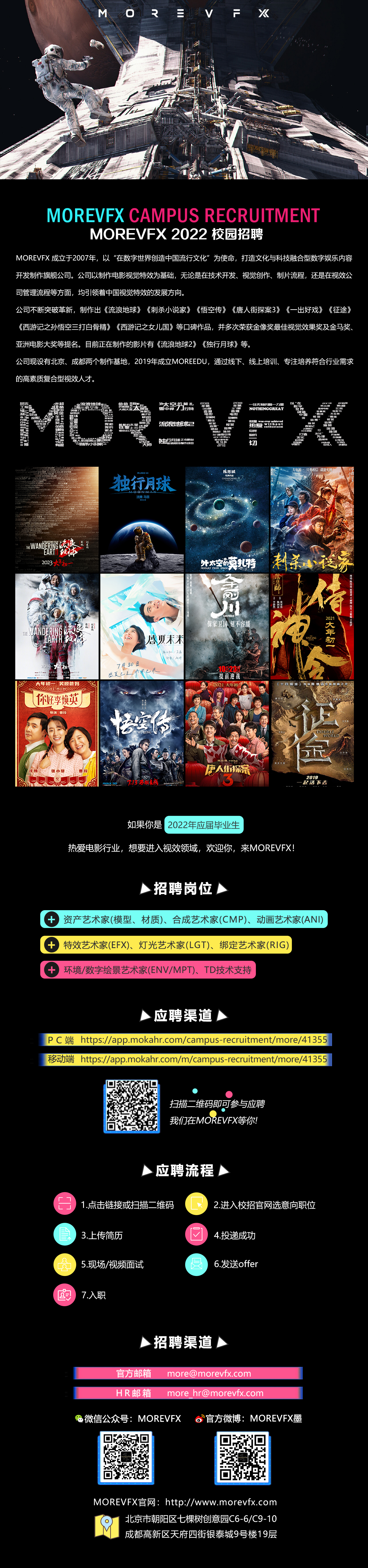 MOREVFX 2022届校园招聘全面启动,MOREVFX欢迎你一起来做电影!