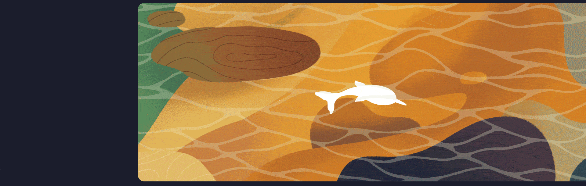 白鱀豚画面中的渔船。以前长江的渔夫会根据它们跃出水面或发出的叫声来判断天气,被称为江神。渔夫都十分喜欢白暨豚,聪明的白暨豚帮渔夫们一起赶鱼,获得奖励 - 小鱼。