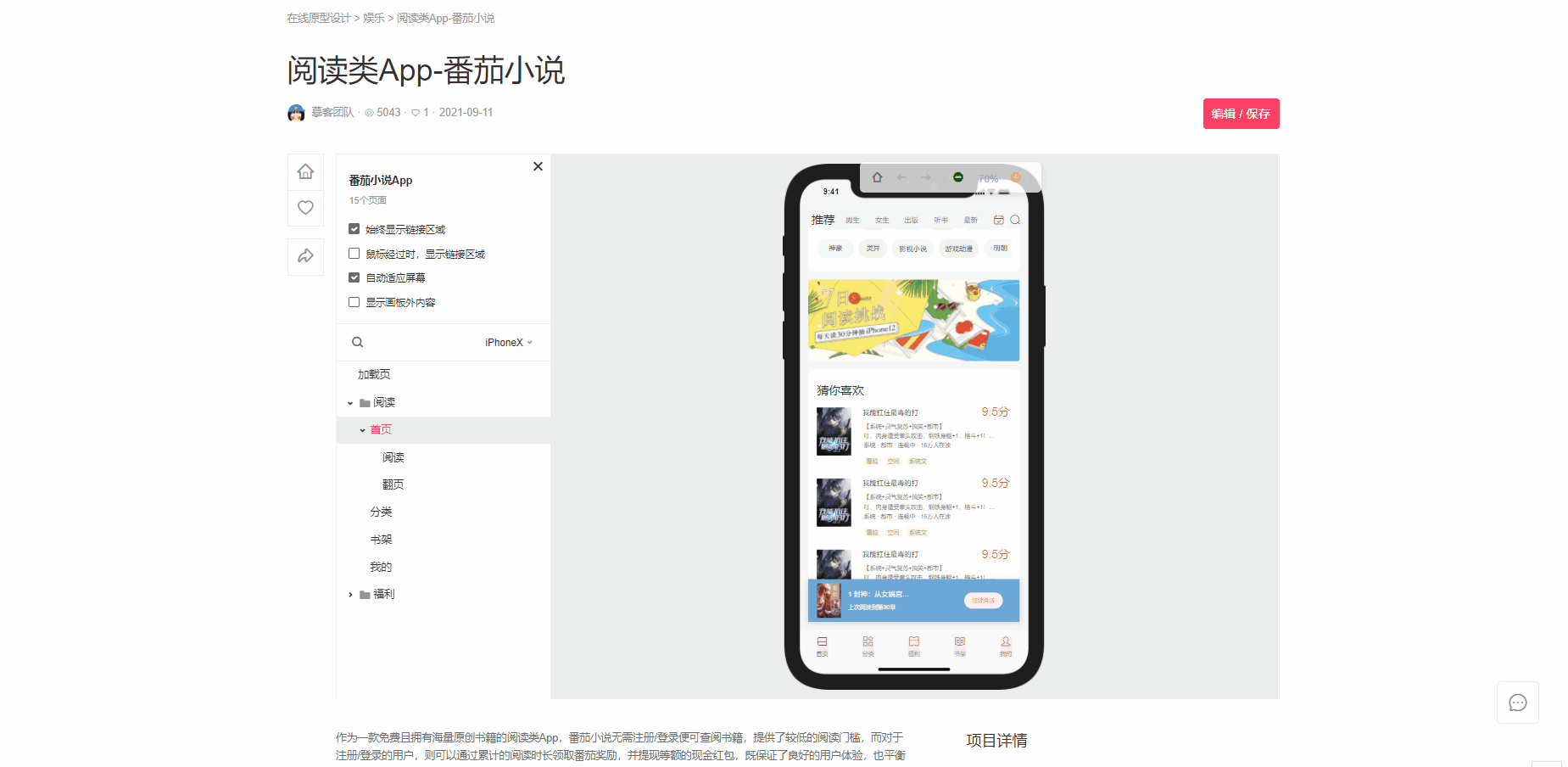 以下我截图的是一款阅读类APP,它把大部分的场景页面都做出来了,当然极个别的页面还是需要使用者根据情况自由补充,但不得不说,这已经很能解决问题了!