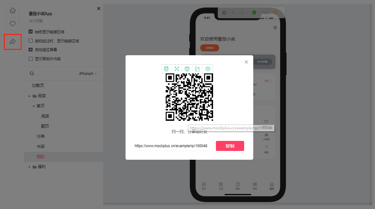 另外,模板也能分享到手机,在手机中同样也能实现页面或组件之间的交互跳转。这样即使不方便使用电脑,也能用手机查看模板例子。