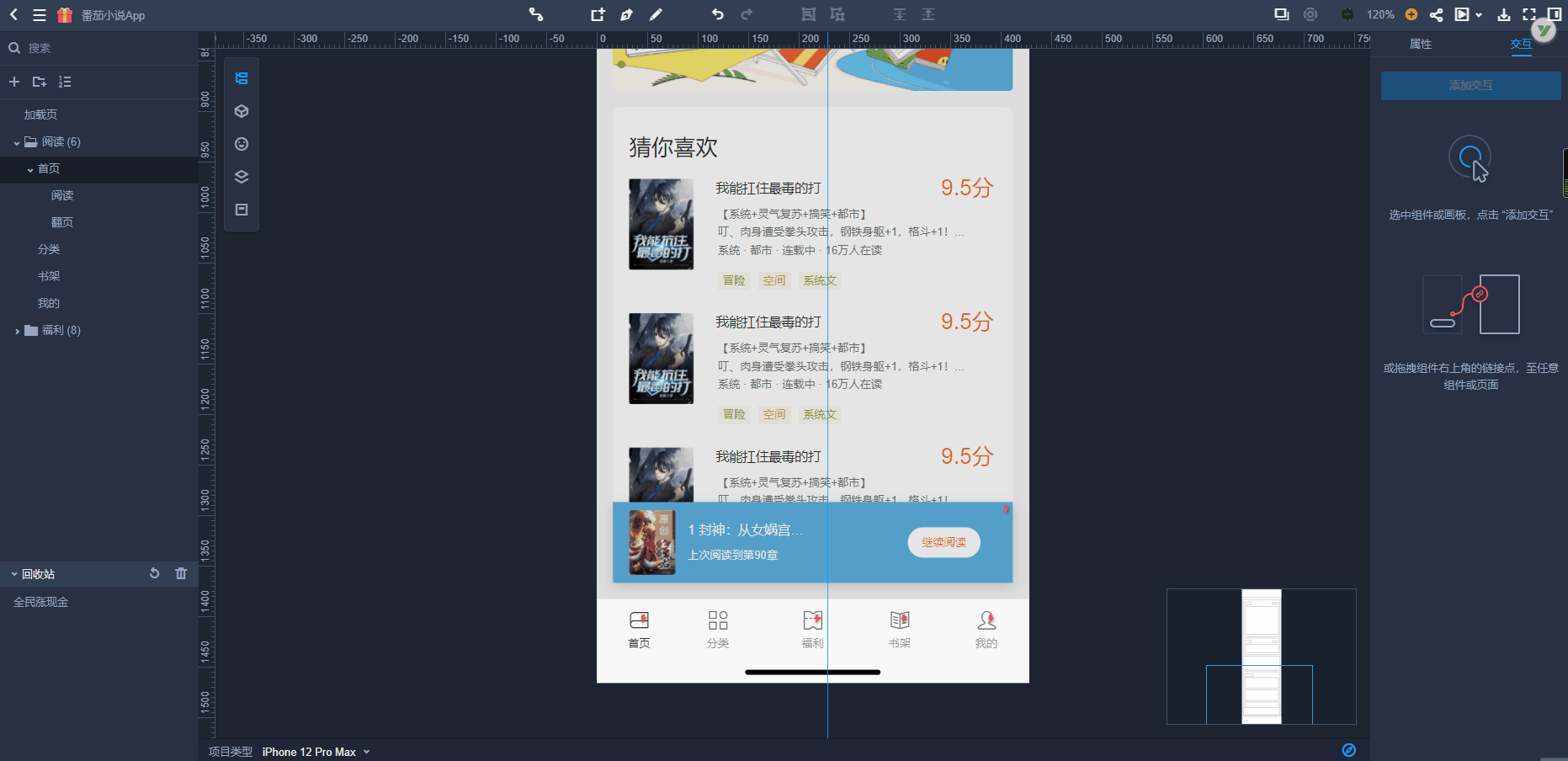 页面逻辑理顺后,就可以建立交互联系了。15种动画效果,8种手势,能满足大部分的交互需求。如果需要页面间交互,拖拽连线就可以。组件与页面间的交互,建立热区,添加交互即可,简单快捷,操作起来那叫一个神清气爽!