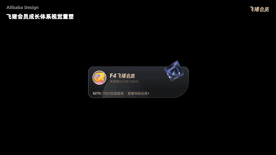 为了迎合现流行的年轻用户,优酷将品牌形象升级为更加年轻的尊贵感,强化“会员卡”资产的定制样式及权益外化来建立与用户的紧密关联度,增强获得感与特殊待遇。并将整套成长体系符号年轻化, 运用 3D 动态与色彩差异的表现,强化用户的身份感及权益的显性化。