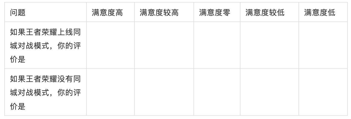 由以上结果可得,回收的这100份有效问卷,大部分人认为“同城对战模式”是一个反向属性的功能,还有很大一部分人认为,这是一个具有无差异属性的功能,所以这个功能现在不应该做。
