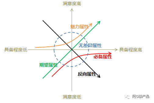 根据不同类型的用户需求与用户满意度之间的关系,狩野教授将产品需求属性分为5大类: