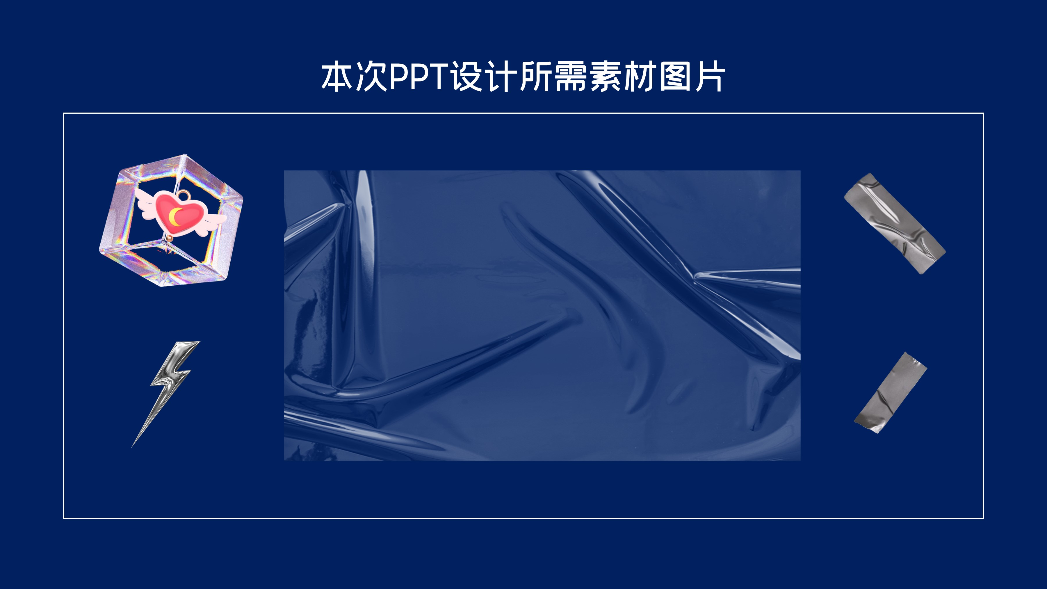 首先,我们要准备一些酸性风格的元素素材,像这种胶带,透明玻璃块,金属质感元素等等。