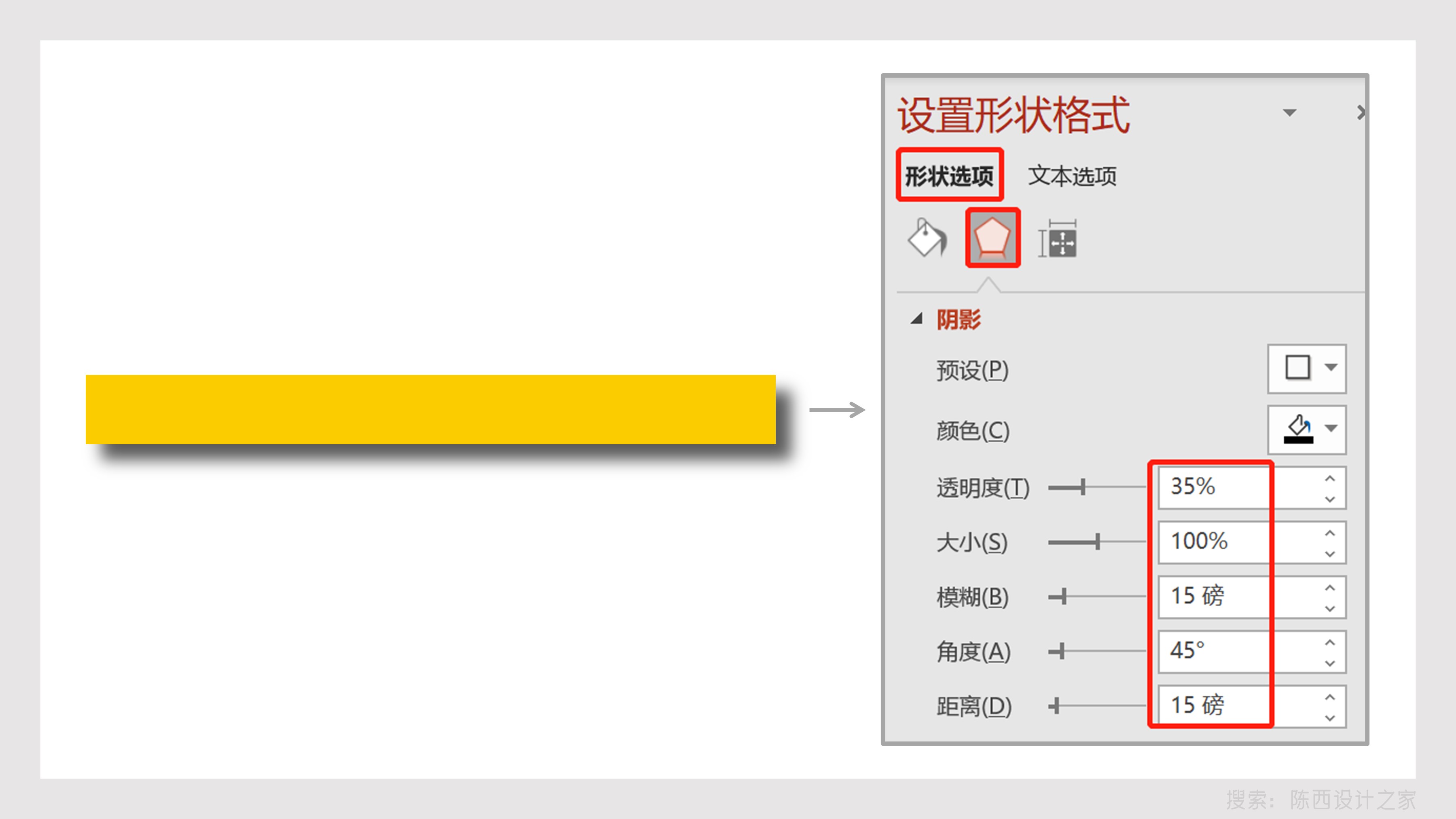 这个长条矩形我们设置了右下角的阴影效果。具体参数设置可以参考上图。