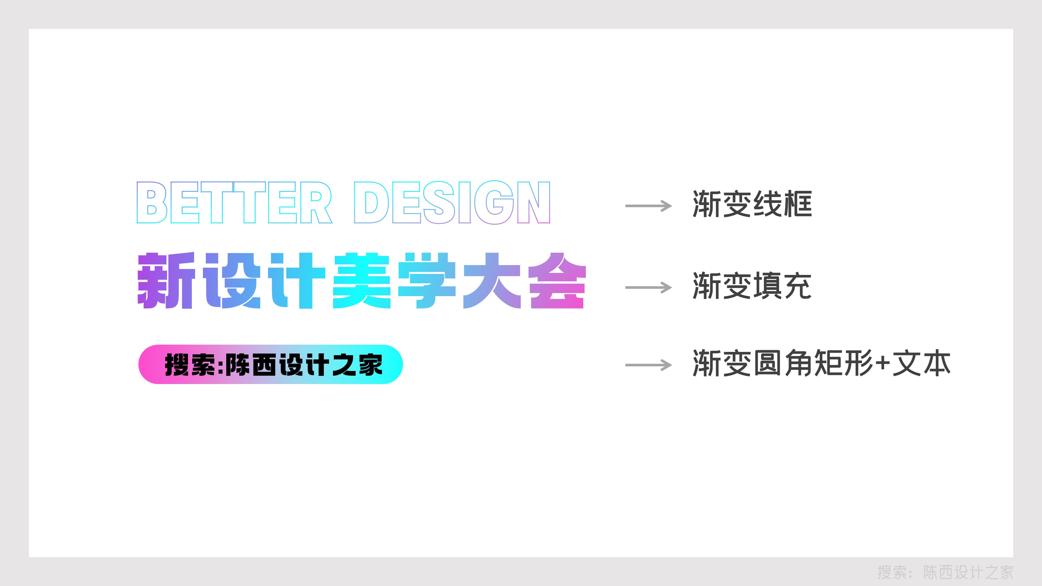 效果设计以渐变为主,一个是设置的渐变线框效果,一个是设置的渐变填充效果,还有一个就是渐变圆角矩形加文本的效果。