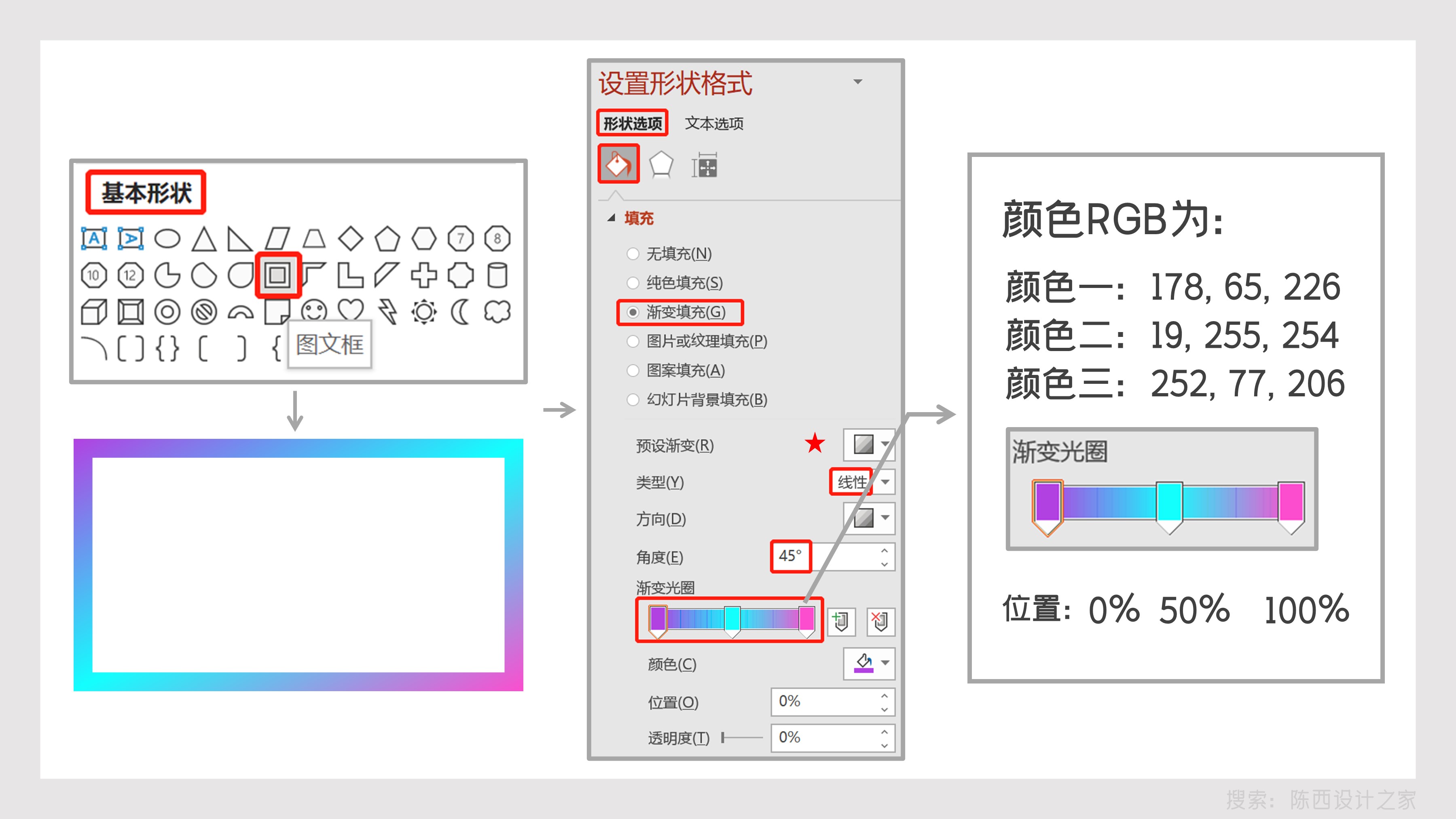 渐变颜色还是之前设置矩形框时使用的那三个渐变颜色。