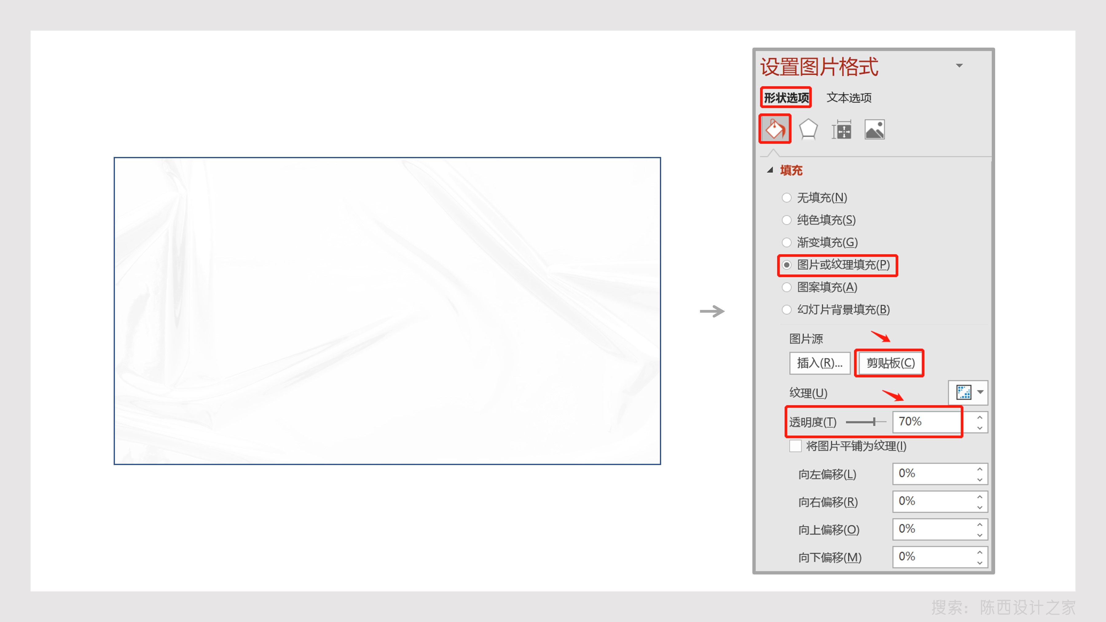 在比较新的PPT版本中,可以直接在设置图片格式里面调节图片的透明度。