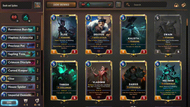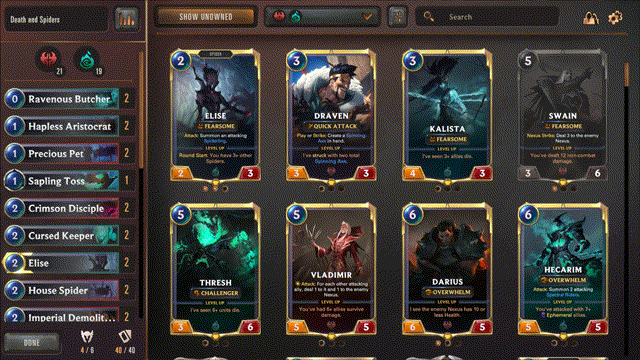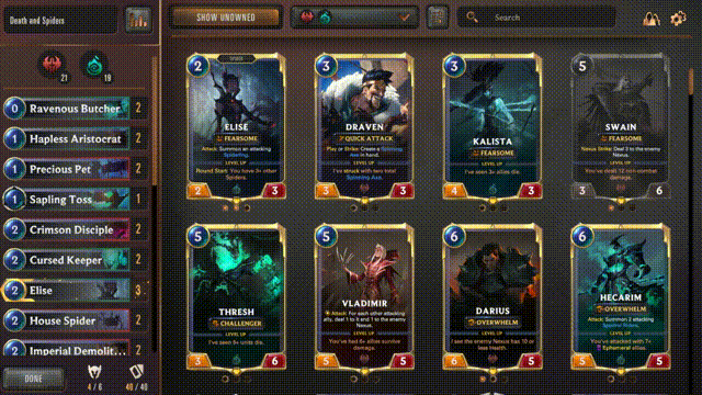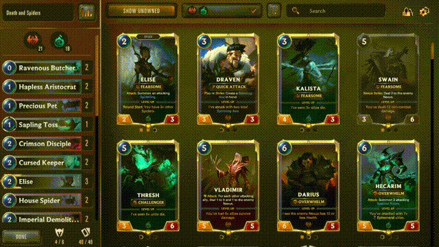 (上图)这里我做了一个拟物化的处理,我把卡组想象成一个实体的卡包或卡盒(事实上我是注意到UI应该是如此设计的,可以看到上面有一个出入口),为此我添加了一个卡片塞入卡包的动画,我希望在一定程度上弥补数字卡牌游戏对于玩家拥有实体卡牌的那种拥有感方面的不足