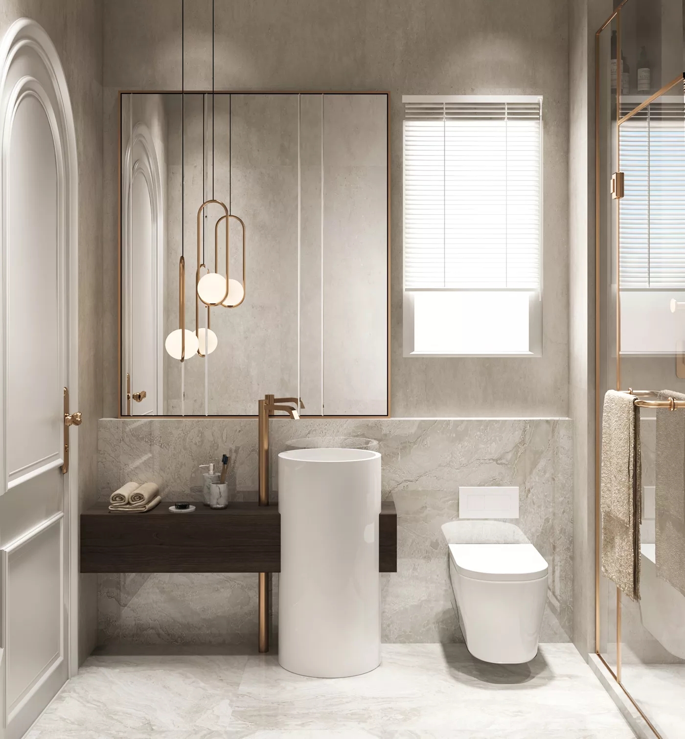 立柱式柱盆常见于小空间,其整体为同一材质,节省空间,颜值也高,但是没有可以收纳的地方,常常需要补充收纳。