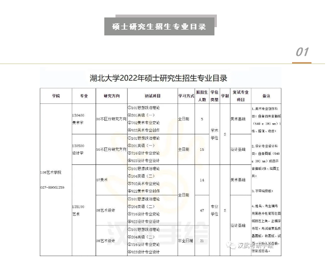 湖北大学2022年艺术类硕士研究生招生专业目录及考试科目
