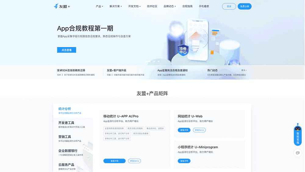 智能客服模块搭载友盟+官网的整体升级改造一同推进