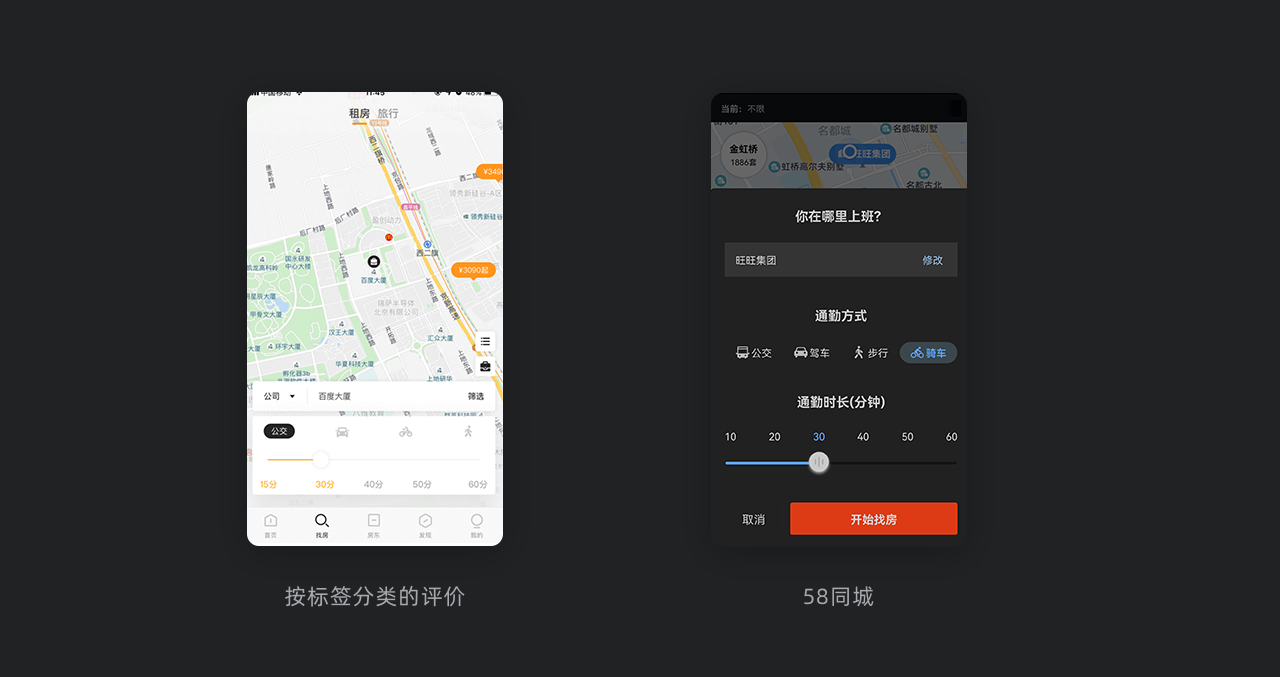 58同城也有类似的设计,使用转移需要的时间,代替空间距离。