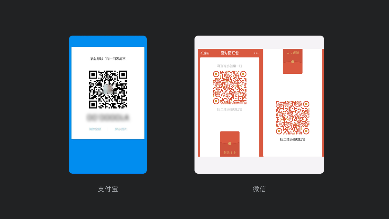 微信也有类似的功能,微信面对面红包会将二维码图案随手机翻转而翻转。