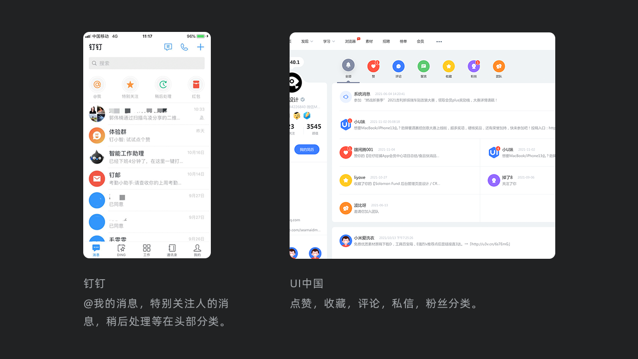 例如各种网站会将点赞,收藏,评论,私信分类,B端后台系统分类各种信息更是常见的做法。只是在移动端,由于屏幕大小的限制,这个做法会需要考虑的更多。