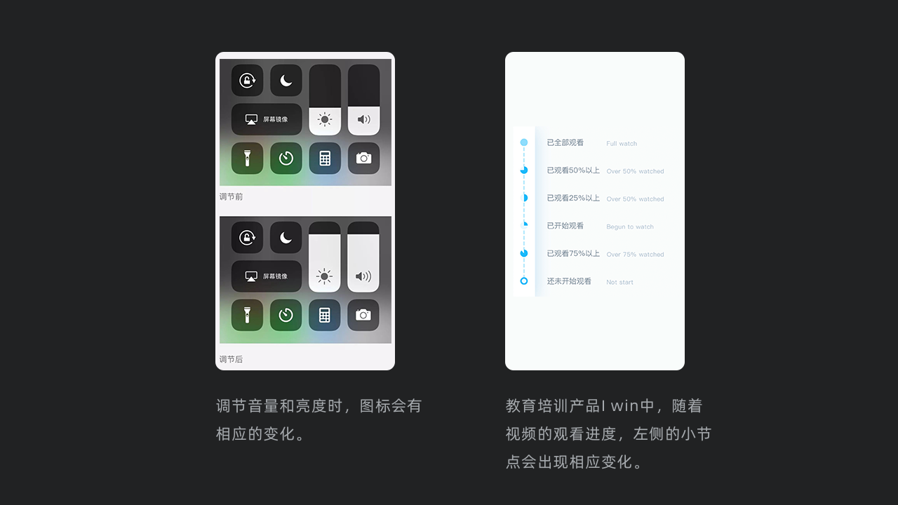 其他案例:教育培训产品I win中,随着视频的观看进度,左侧的小节点会出现相应变化。