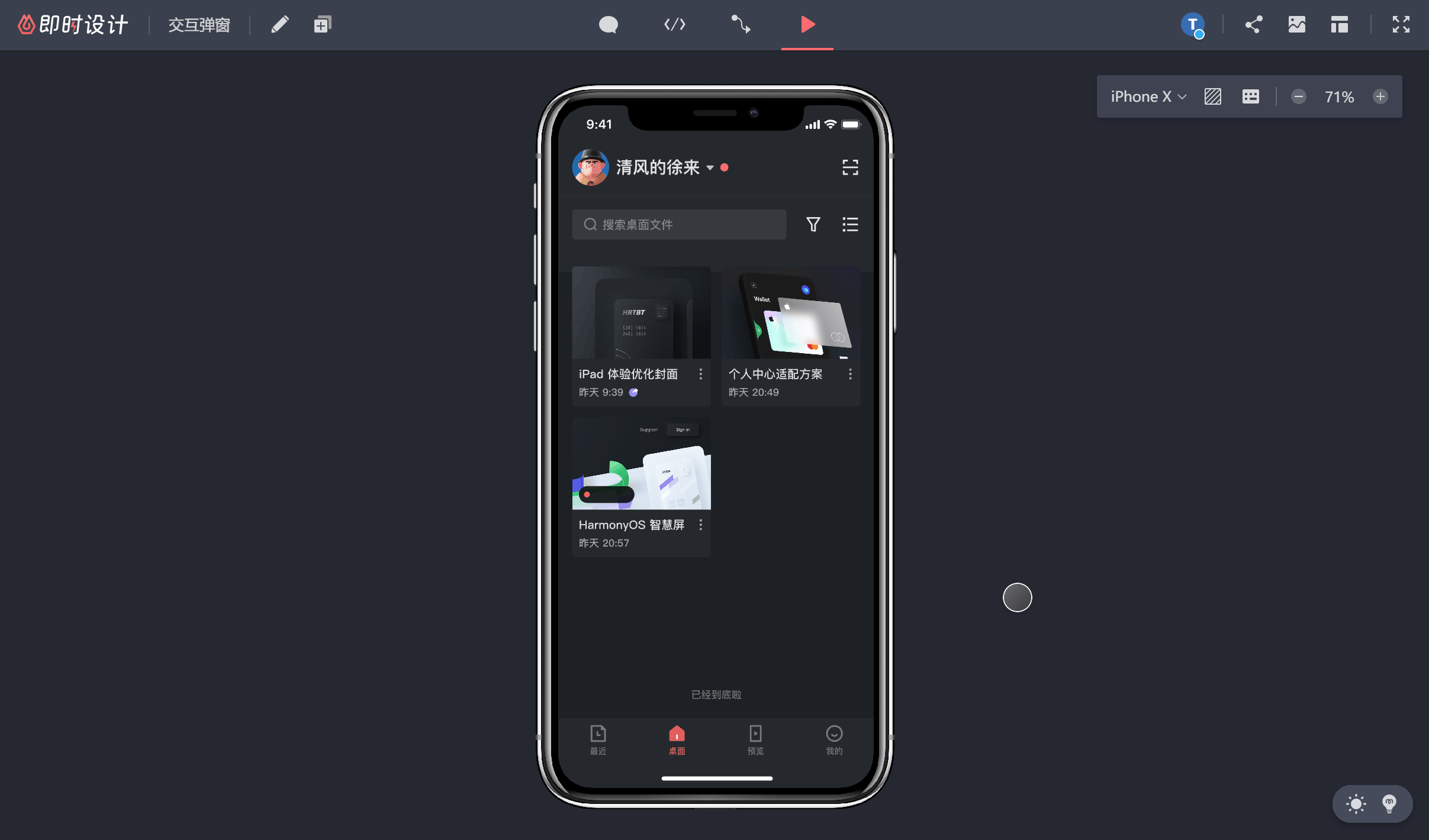 再加上我们的移动端 App,甚至可以在手机上做到以假乱真的真机演示~ 哦对了,你还可以在即时设计上实现可交互的作品集,投简历的时候一个链接发过去,想想就带感!