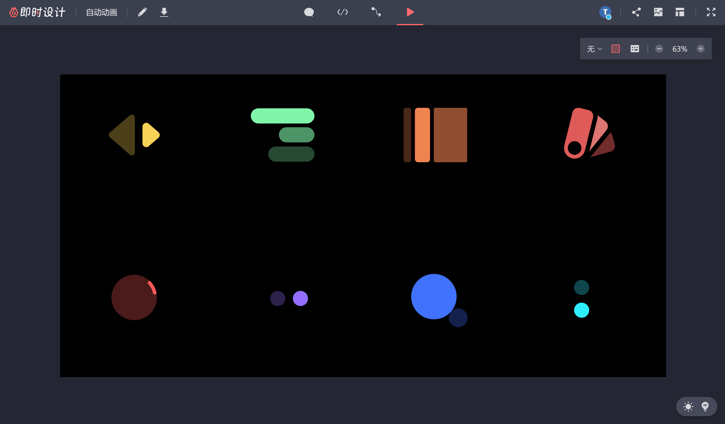 有了这个之后,你可以在即时设计里做出各种细腻的动画效果,页面加载、过渡、图形平滑变换等等,甚至还可以用来做 PPT 和表情包……