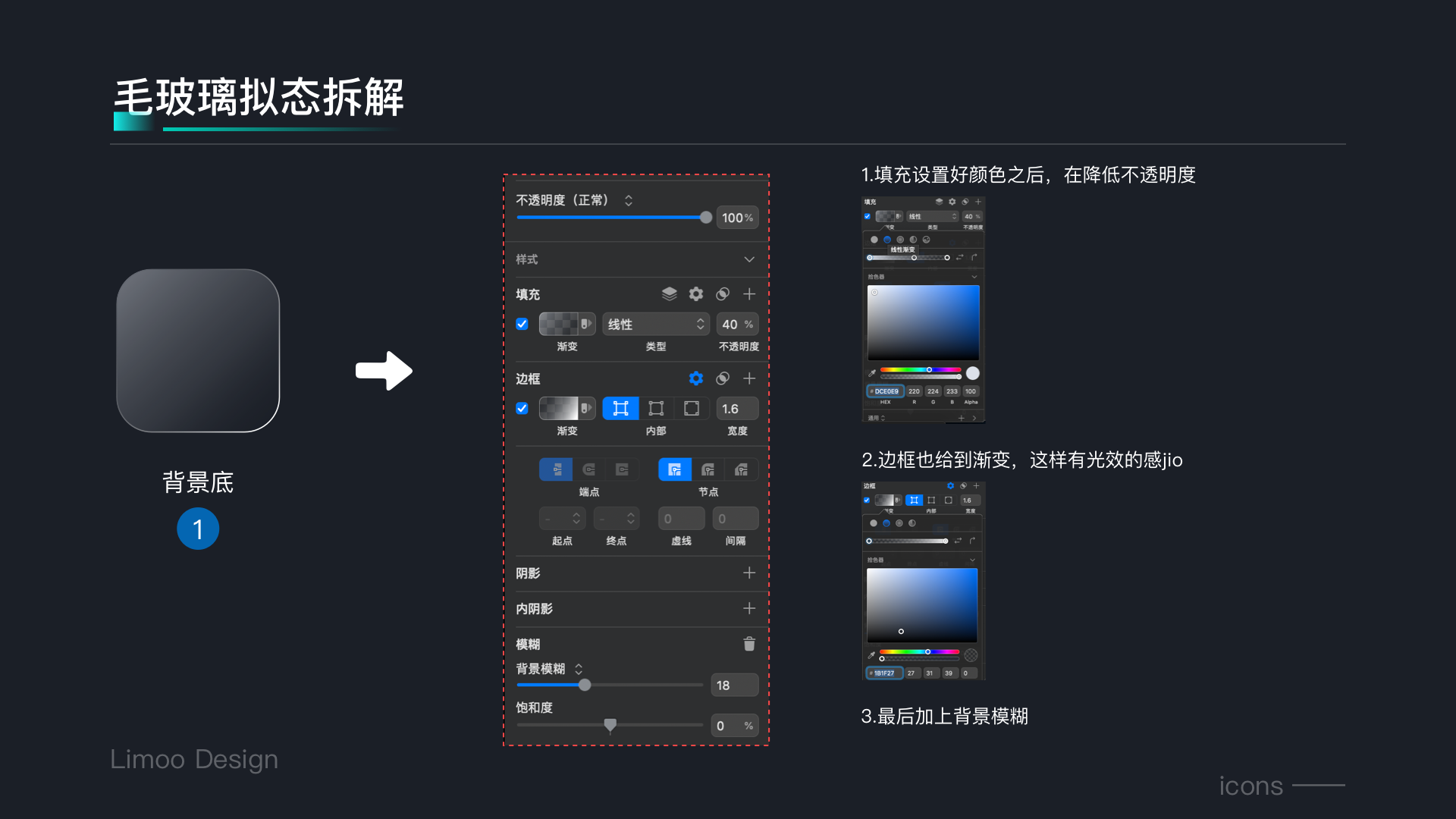 大家好!最近毛玻璃风格挺吸引视觉的,所以用sketch做了一组这样风格的icon,刚好可以分享一下自己在操作的步骤过程,希望对感兴趣的设计师小伙有帮助,请多多指教鸭!