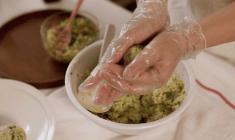饭团中花生油和西蓝花的结合更加突出了食材的风味及营养,也使饭团更加健康;除了作为便当外,花生油饭团也可作为孩子的辅食以及野餐出游的必备美食。