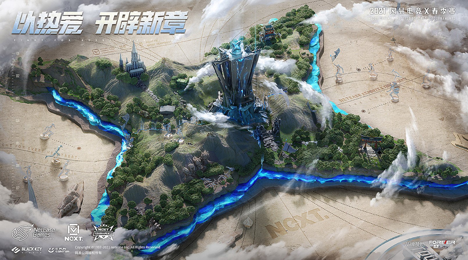 站酷网: 据了解,2021NeXT春季赛虚拟直播间首次采用了电竞园区的概念,可以为我们介绍一下细节部分吗?为什么这样设计?