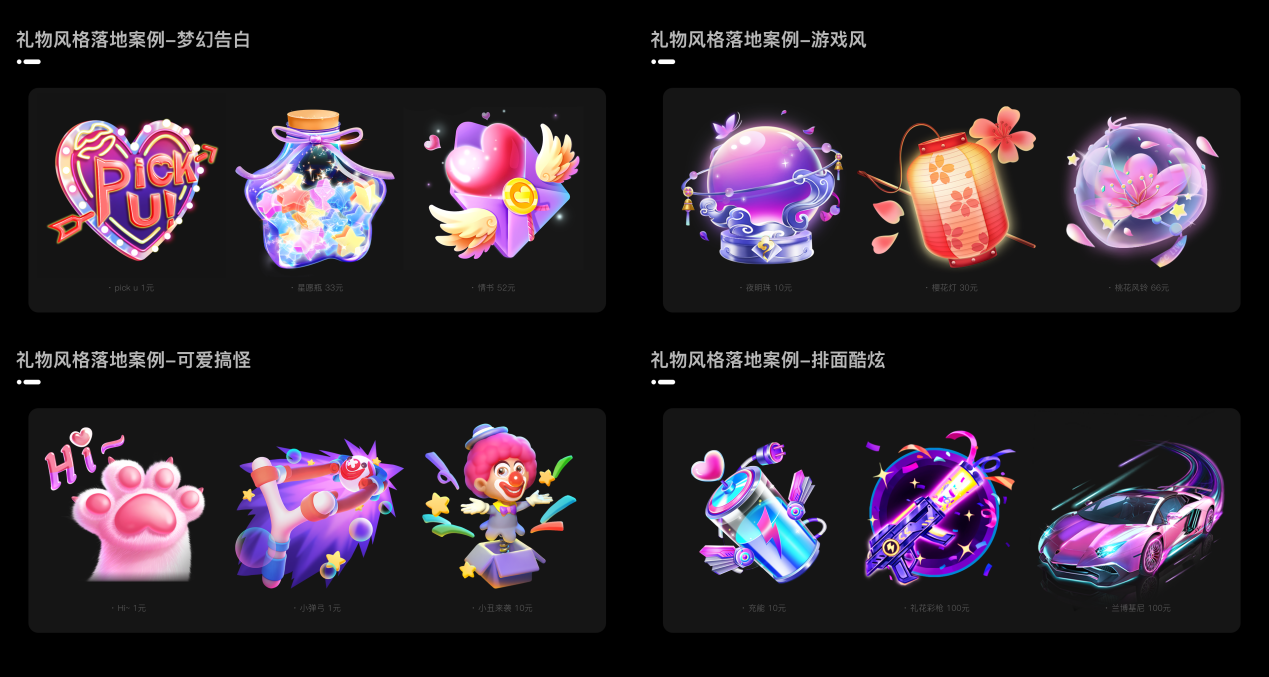 直播行业面对庞大的用户群体和不断革新的潮流,我们需要不停研究礼物上线数据,尝试礼物不同的设计方向和技术迭代,目前平台得礼物已经走向UE化,UE技术在提高礼物视觉效果同时也提升了制作效率,使设计师的创意想法能更好的表达出来。我们会继续摸索新技术让礼物设计有更多的可能性!