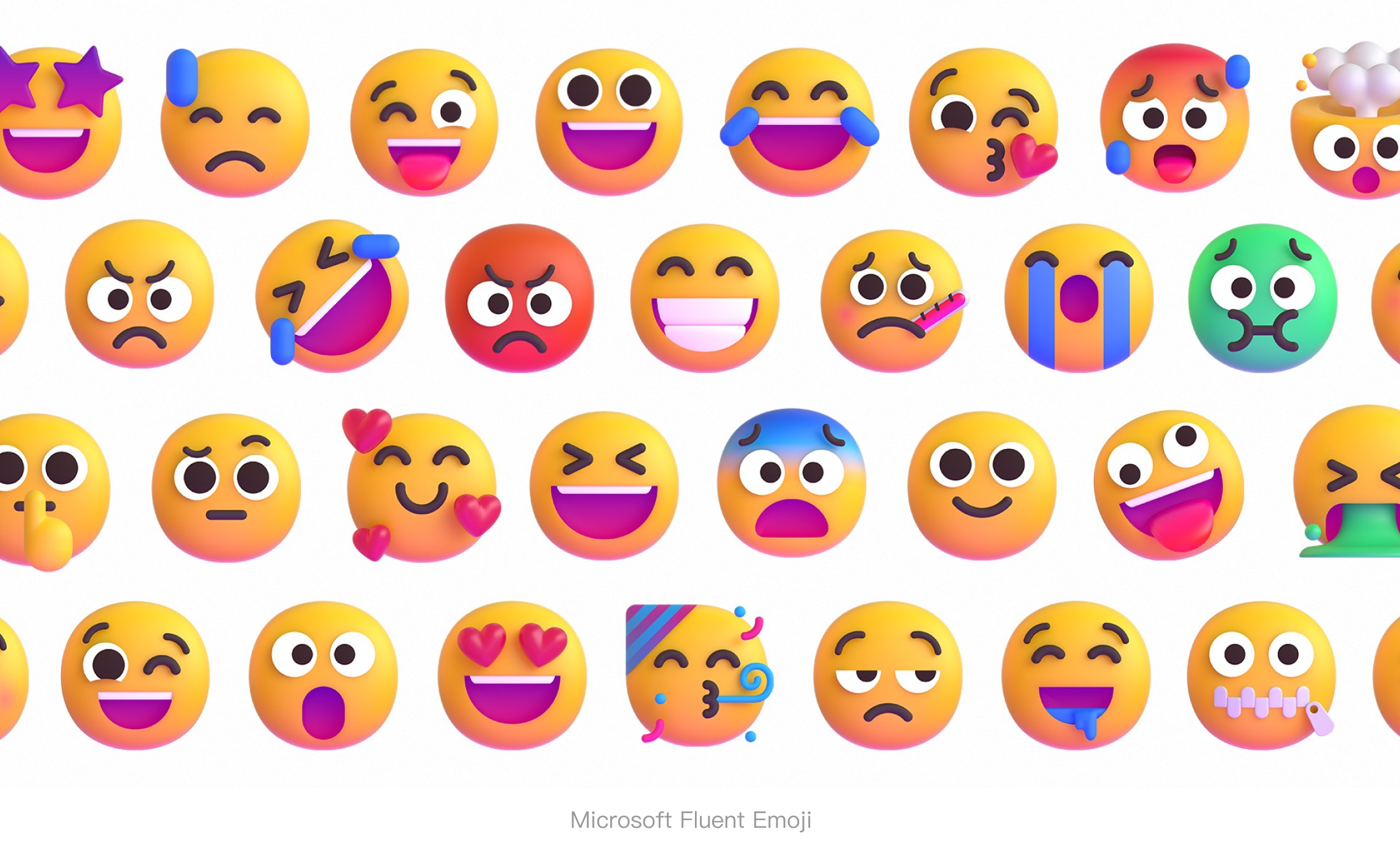 在今年微软也展示了他们采用3D风格的 Fluent Emoji ,充满了质感与趣味性。