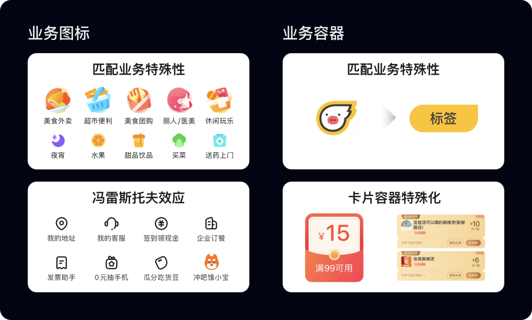 在业务层,按业务特性需强化图标,或借容器表达业务的特殊性,帮助提升业务感知和吸引力。