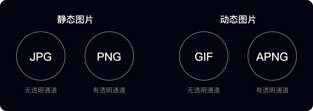 图片使用后端下发的形式以减轻安装包的负担,但图片的下载依然需要注意内存不能太大,常见有以下几种图片格式: