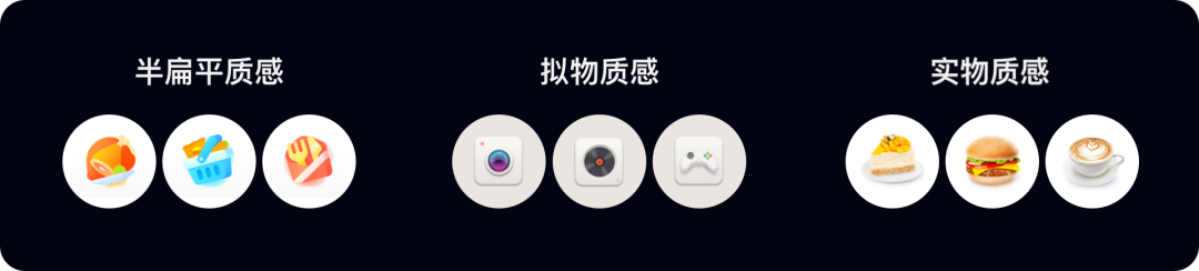 在通用层,按质感强弱可分为:拟物、新拟物、半扁平、扁平。设计师需要依据产品功能选择适合的质感。