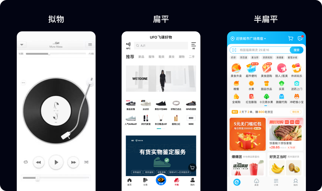 (1)拟物、扁平和半扁平