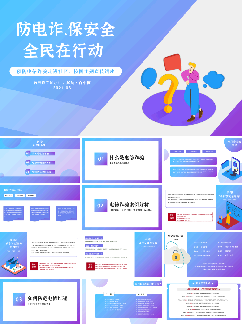 今天小编分享10套精选的预防诈骗PPT模板,内含样式和范文,稍加修改即可使用