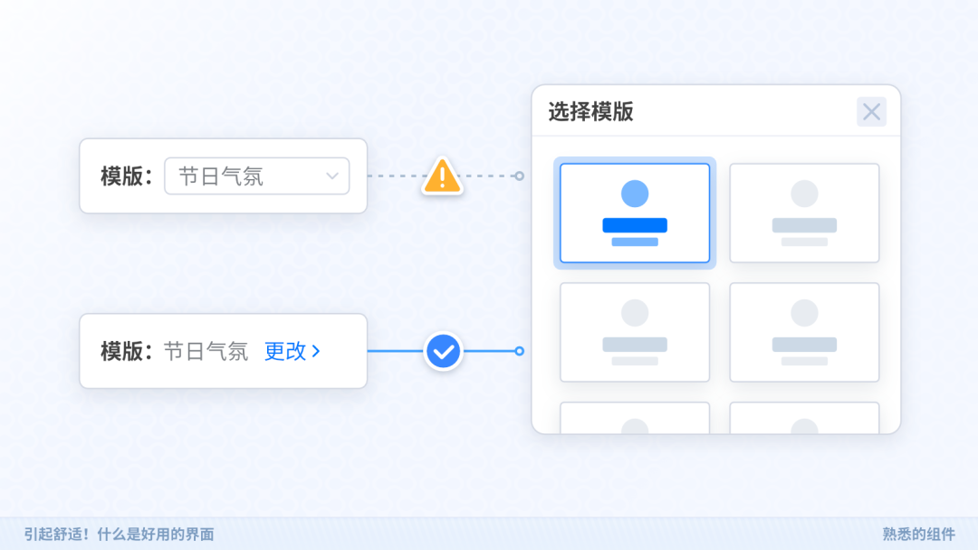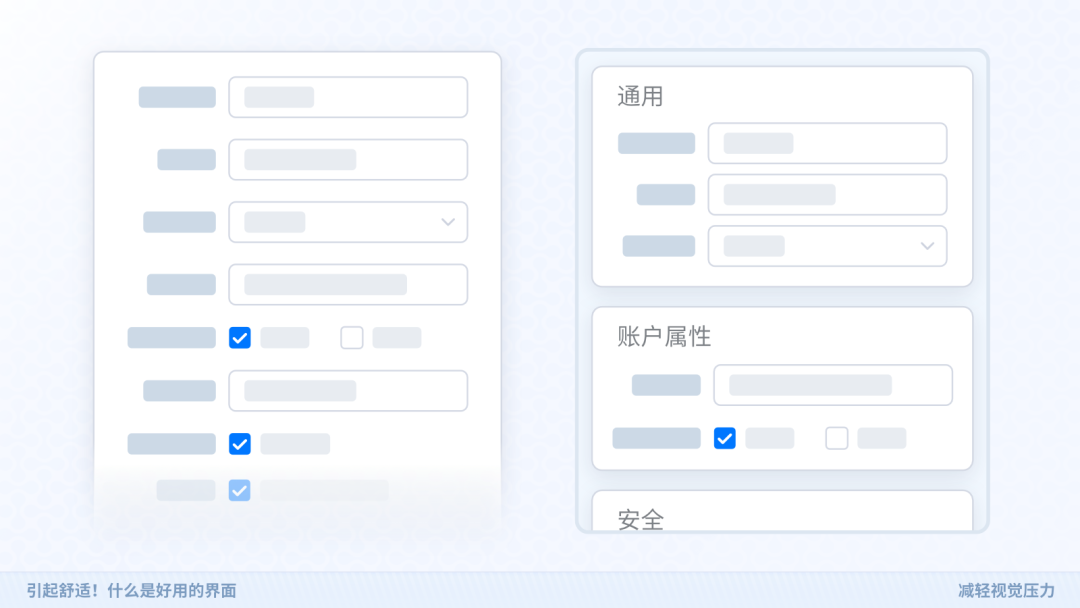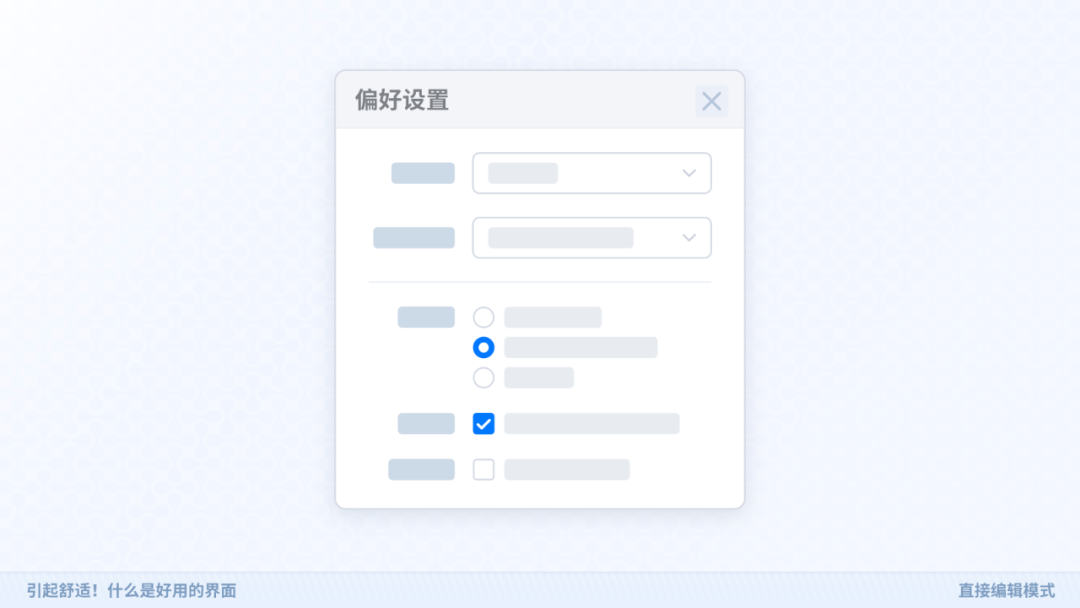 图形界面的本质是人与机器交流的语言。与现实生活一样,我们倾向与礼貌体贴的对象沟通。所以下手设计时要尽最大可能 从人类的本性出发,才能在业务和产品逻辑的限制下,为用户塑造更具亲和力的界面模型。