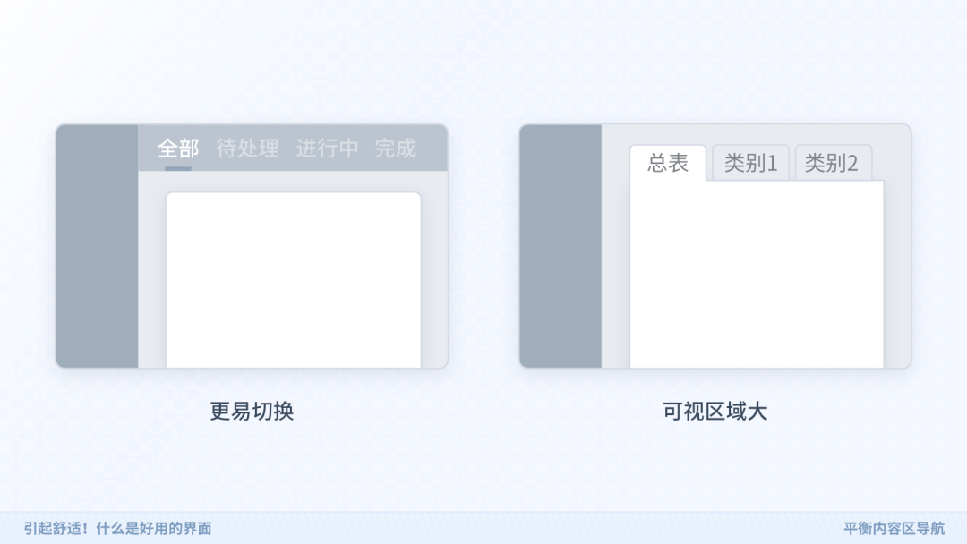 吸顶导航会占用内容区的纵向空间,但可以 随时跳转。