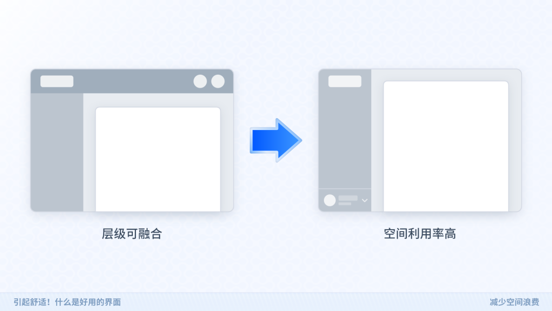 很多原型会 习惯性地在页面顶部配置一个顶栏。实际上里面的商标,账户信息,设置等功能可以整合到边栏中,这样内容区上方会多一些纵向空间。