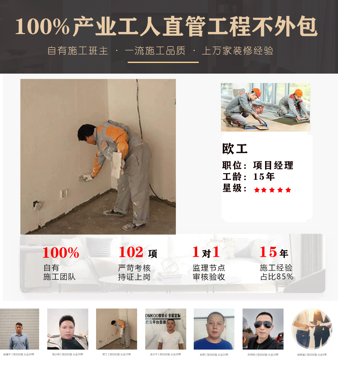 100+精英设计师、自有近百支优质施工队,用心为业主打造放心好装修设计。