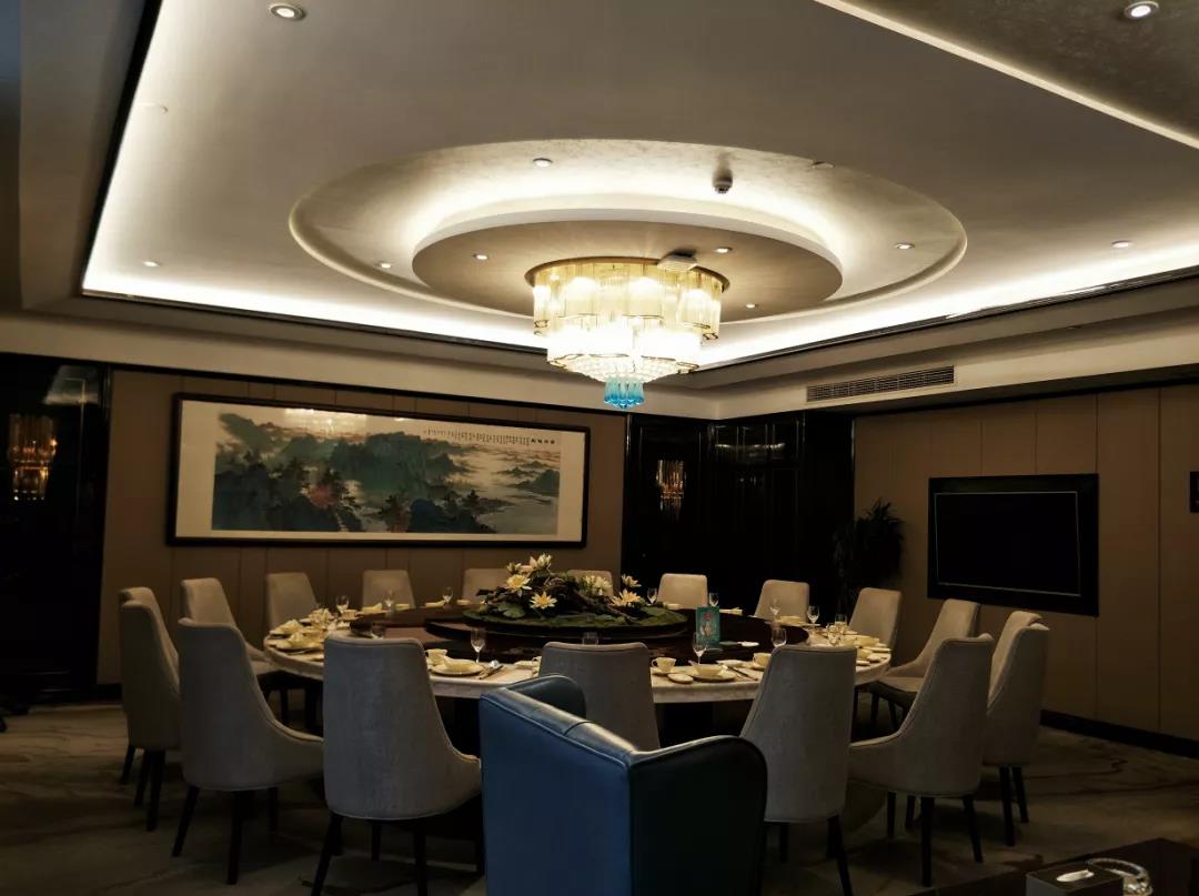 暗黄色的温馨灯光映照琳琅满目的餐桌上,也把一旁的山水画都一同照亮,营造出了朦朦胧胧的感觉,在此与朋友交流谈心,箪食壶浆,彷如进入了山水画中的世界,此中世界,就如同镜花水月般朦胧,美丽,令人着迷。