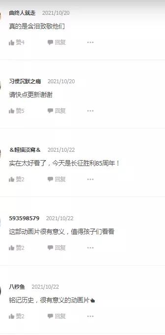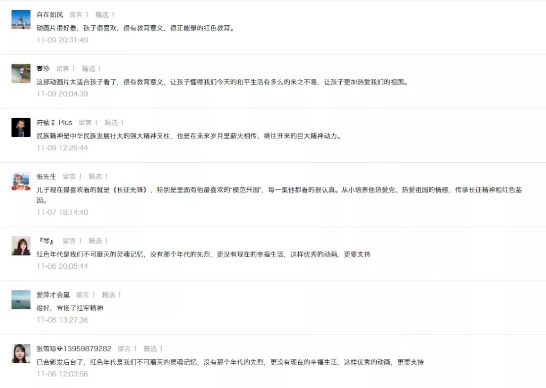 动画片以短小精悍的内容形式吸引了大量的观众。将原本沉重严肃的内容通过二次元文化载体进行呈现,通过孩子的视角,结合少年儿童的审美习惯和视觉文化特点,将波澜壮阔的长征搬进动画荧幕中,让革命故事更加鲜活生动,通过潜移默化的形式从小培养爱国主义情怀,让革命薪火代代相传。