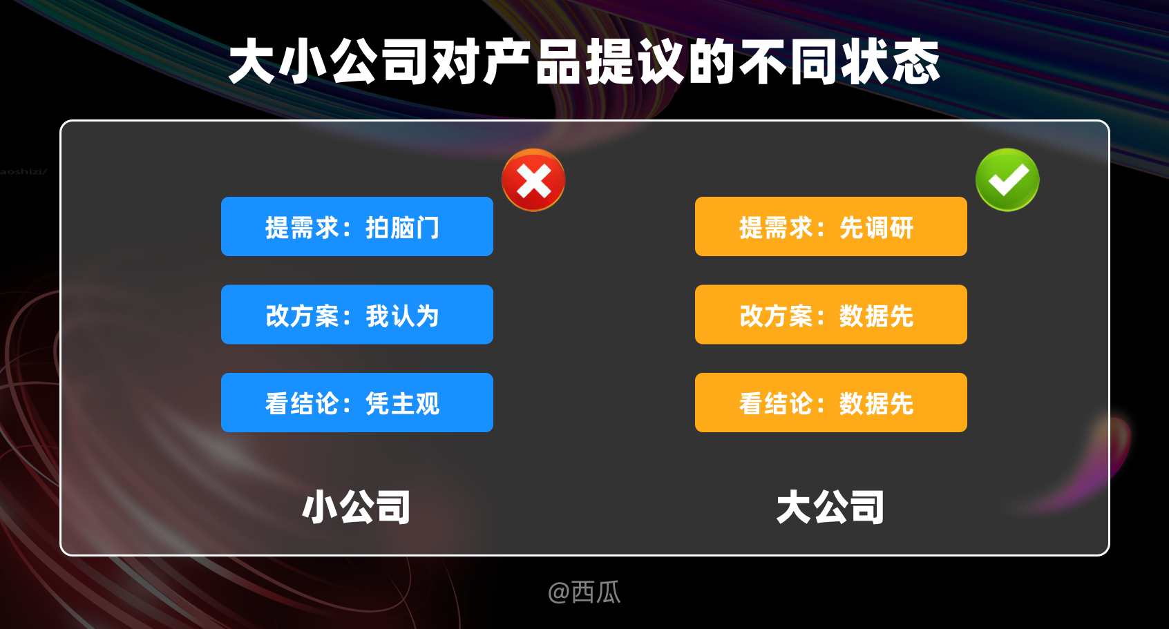 还有很多类似问题,我不一一举例了,大家可以自己通过上述五个问题举一反三。其实再多问题,归根结底就一个原因不会有二,那就是你根本没有从根儿上找问题原因,而是只理解了问题表象,就去出结果了,最终导致根本打不到点儿上。这是很多人的问题,包括我,也是这样,高级一点的人,会套用一些所谓的设计模型、研究方式,外行人一眼看,感觉很高档上,但如果我问你,最后他能解决什么问题,产出结果是啥,给我个实际的落地结果,你能回答么?