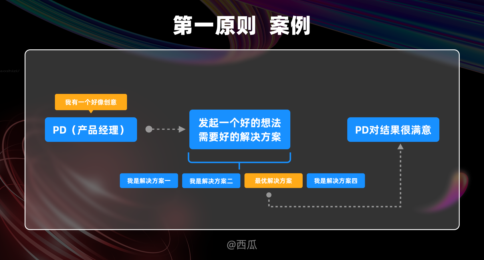 前几天我写过一个比较小的短文,标题是:《关于“第一原则”的思考分享》,目前还在我的公众号里,有兴趣阅读的朋友可以关注我公众号:西瓜的设计。