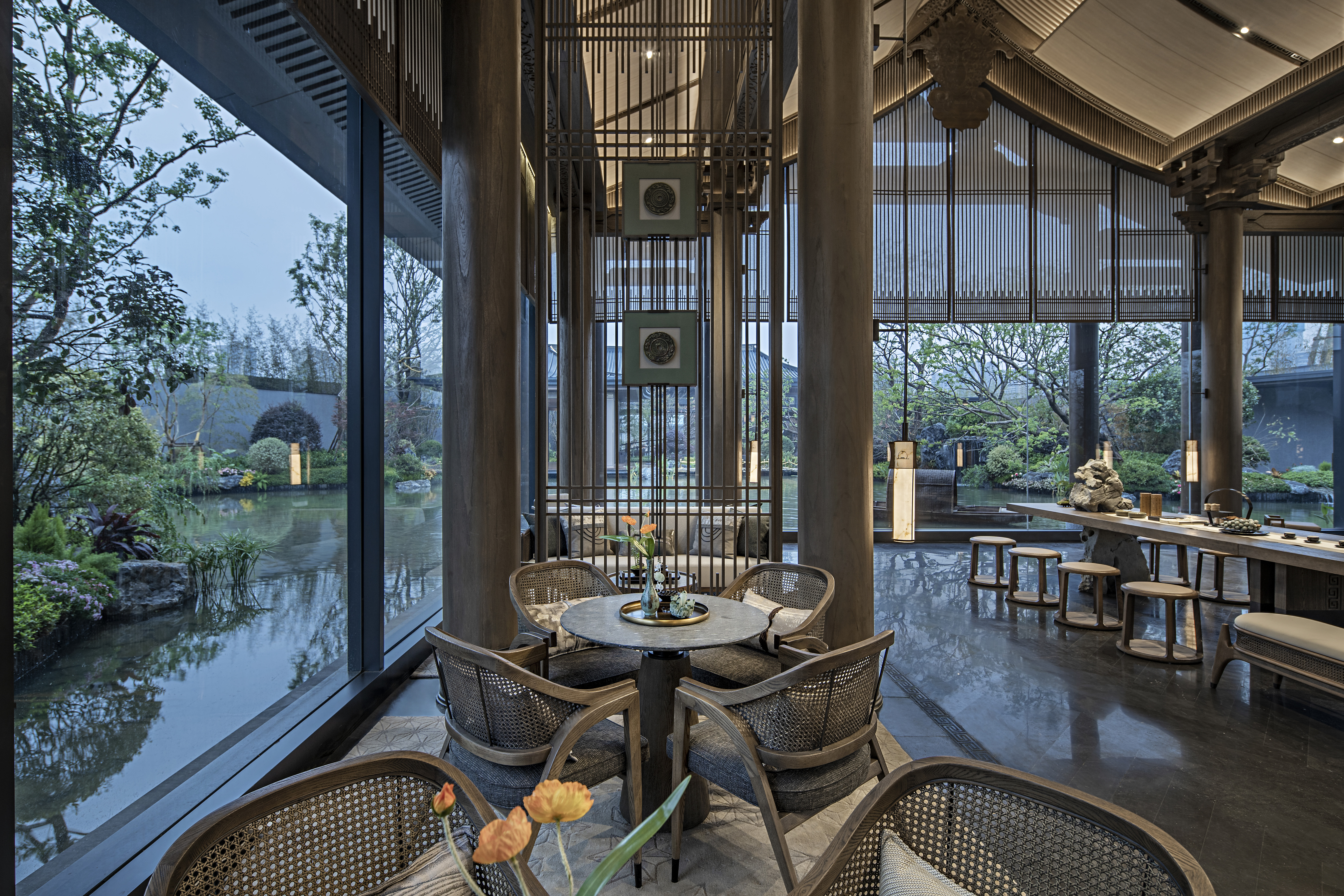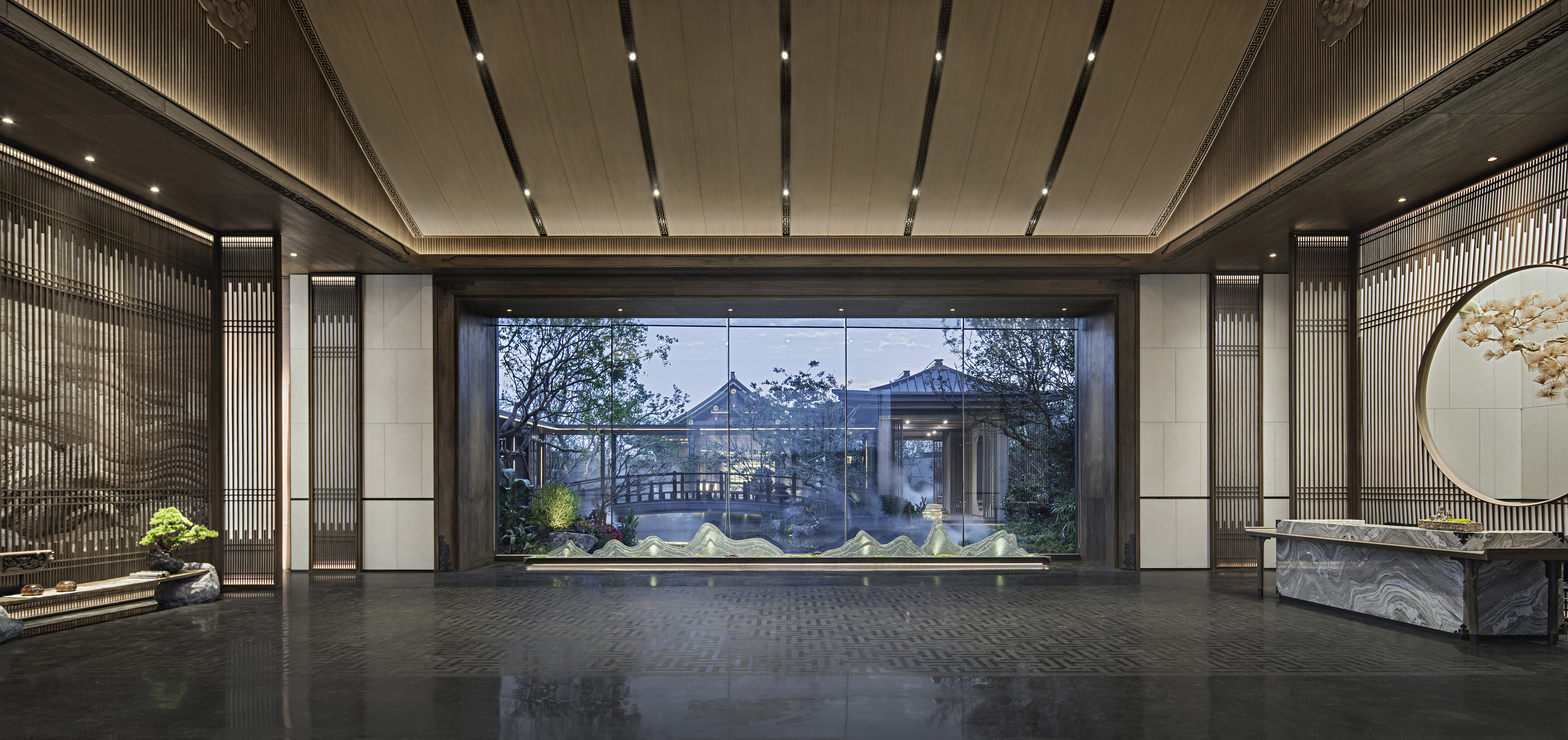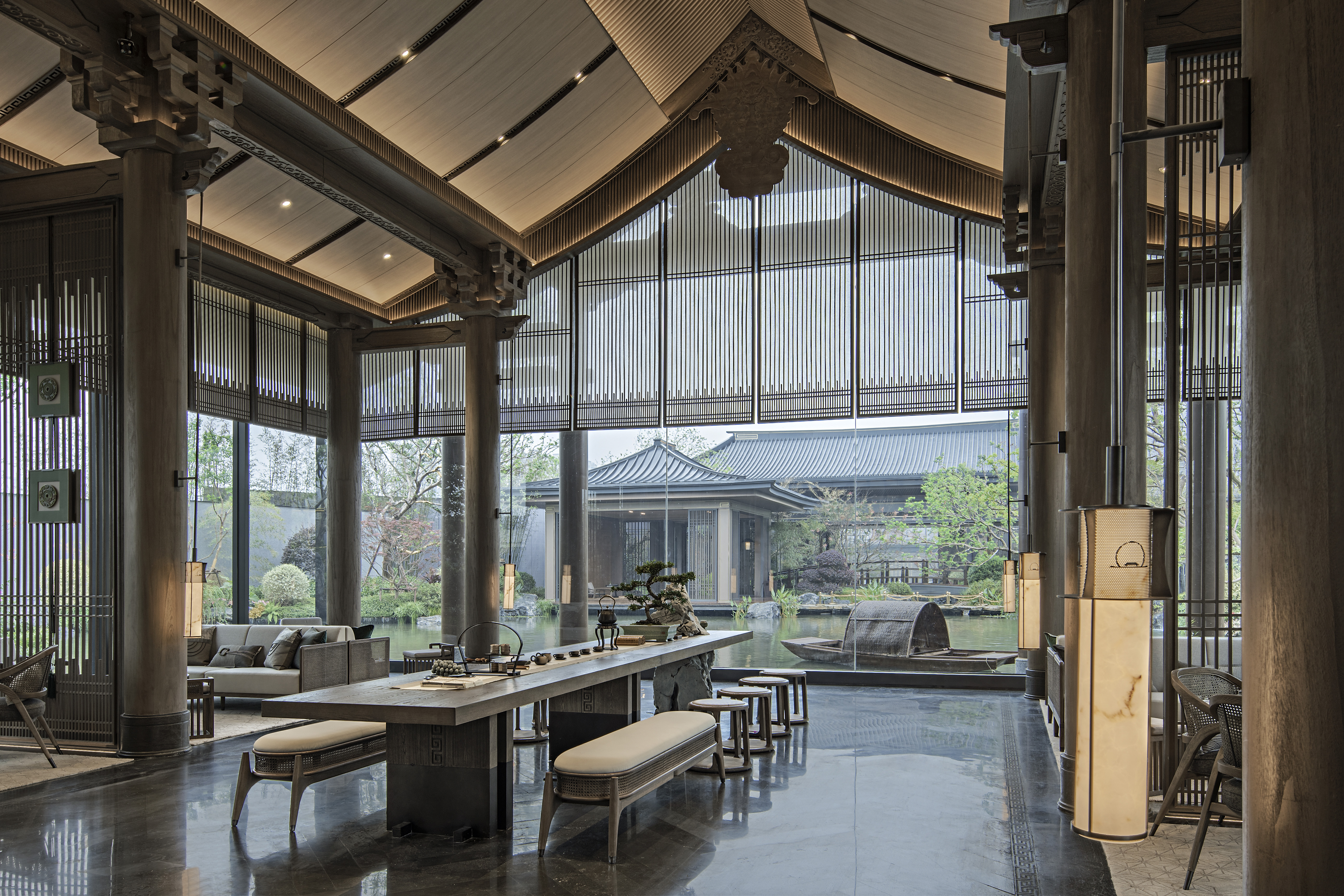 烟波浩渺,临水合韵,隐于碧泉松间。建发玖洲和玺由盘石设计倾力筑造,以婉转悠长的艺术笔触,于山缥水缈中渲染出浓郁的隐逸意蕴。